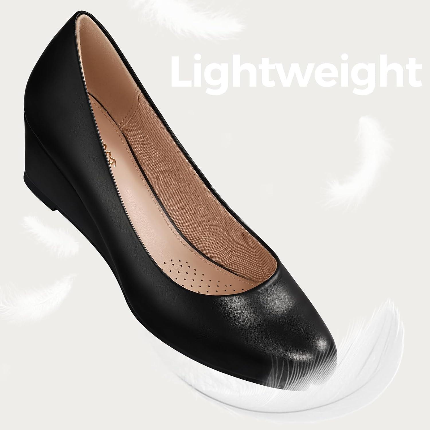 Ankis Black Nude Silver Gold Wedges for Women, Low Heel Women's Wedge Comfortable Closed Toe Women Pumps Dress Shoes -2Inch(Black Pu)