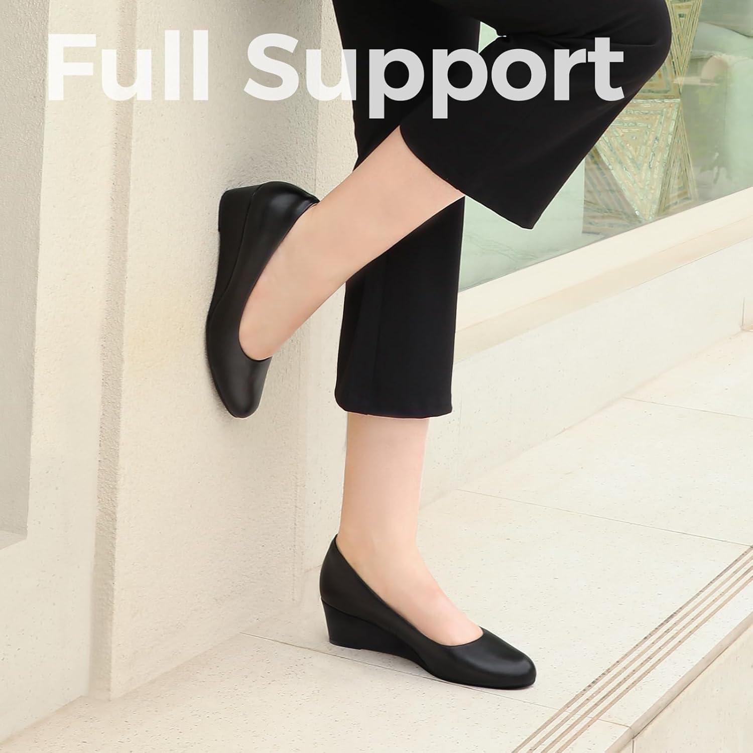imageAnkis Black Nude Silver Gold Wedges for Women Low Heel Womens Wedge Comfortable Closed Toe Women Pumps Dress Shoes 2InchBlack Pu