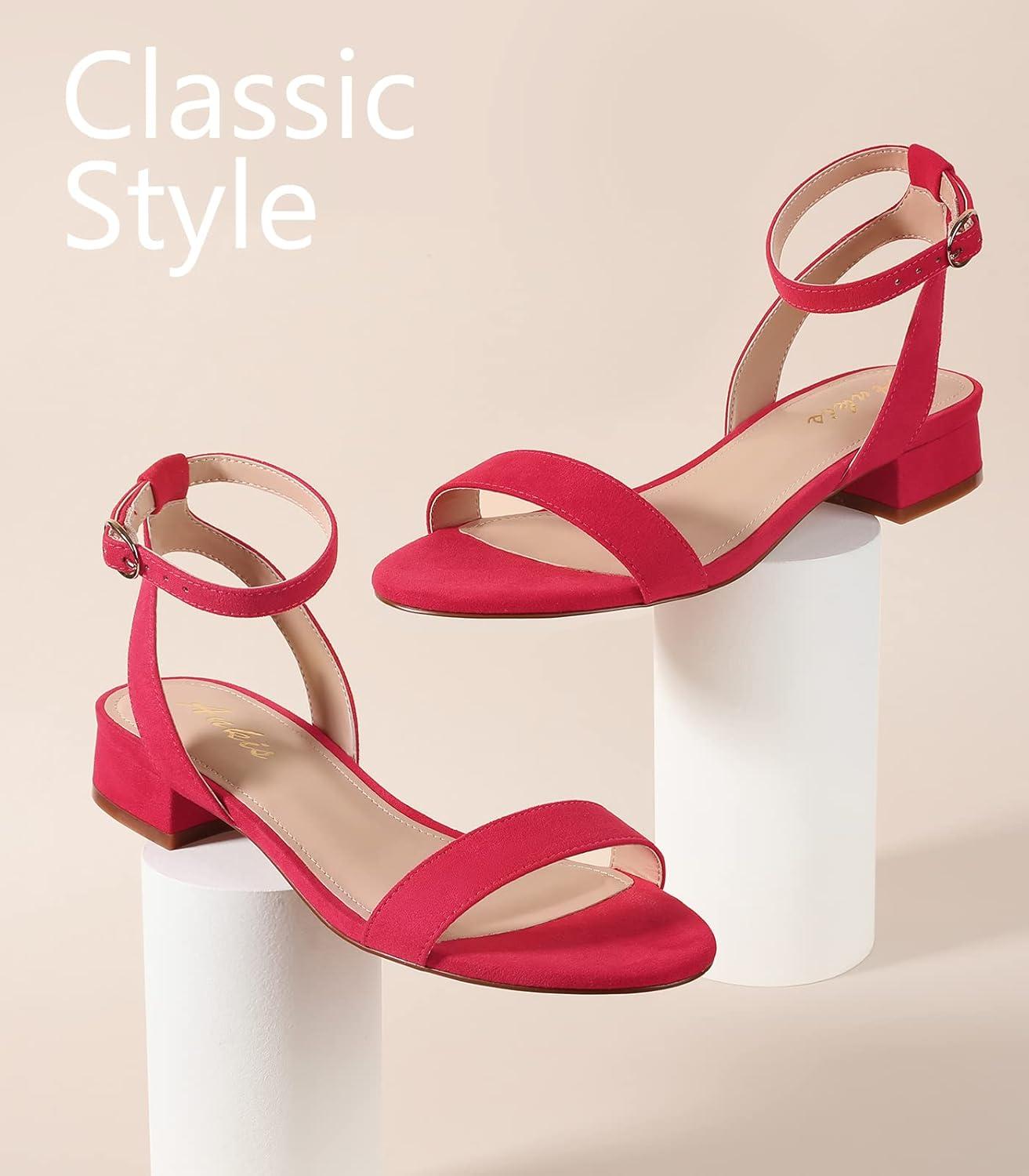 Ankis Black Nude White Red Women Sandals Comfortable Walking Strappy Open Toe Sandals for Women Dressy Summer 1 Inch Low block Heel Flat Adjustable Ankle Strap Wide Available 2023