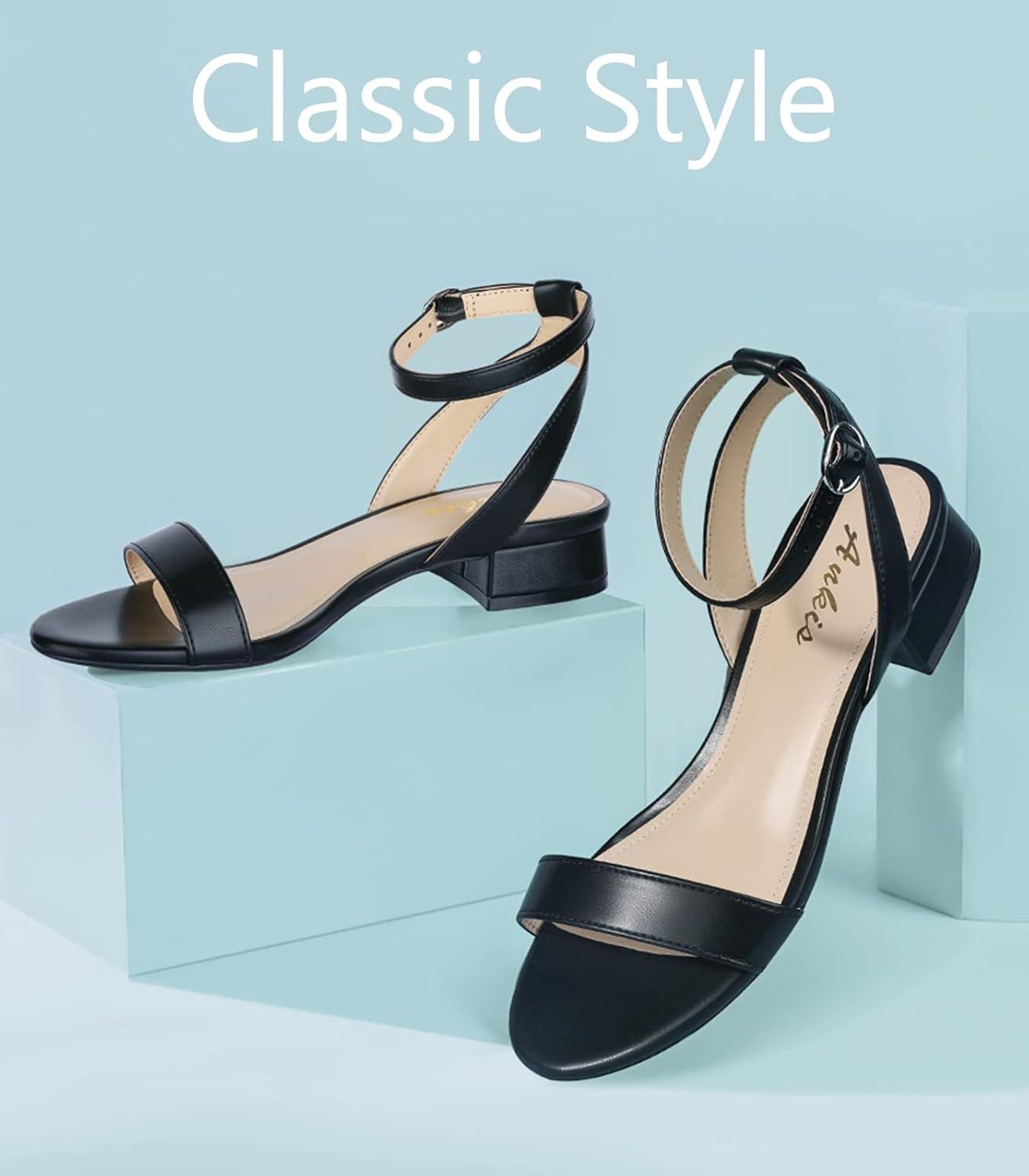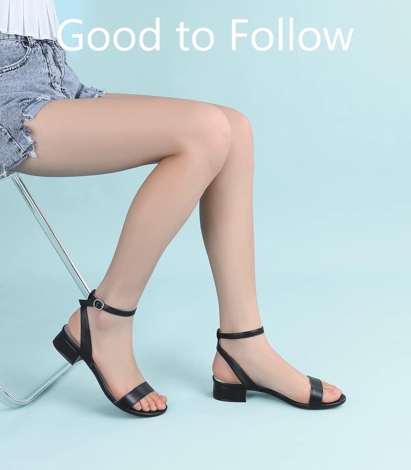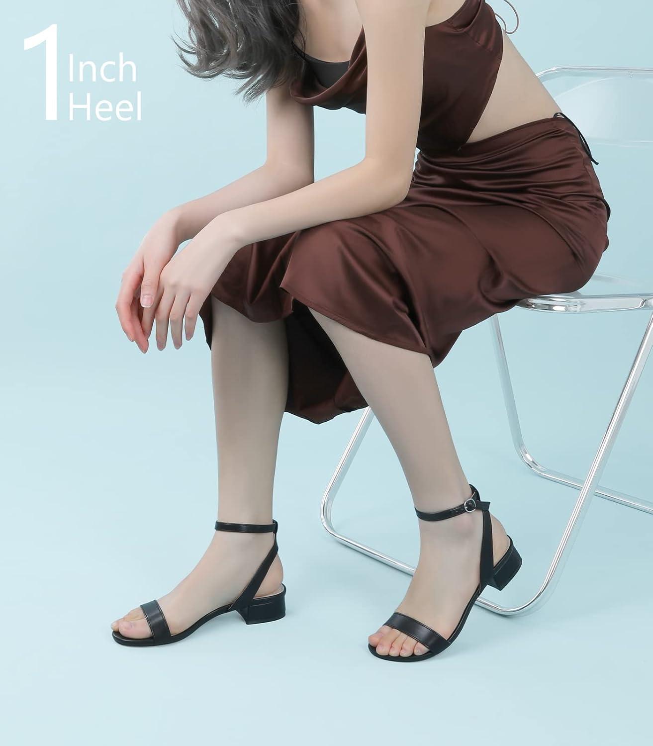 Ankis Black Nude White Red Women Sandals Comfortable Walking Strappy Open Toe Sandals for Women Dressy Summer 1 Inch Low block Heel Flat Adjustable Ankle Strap Wide Available Shoes 2025(Black Pu)