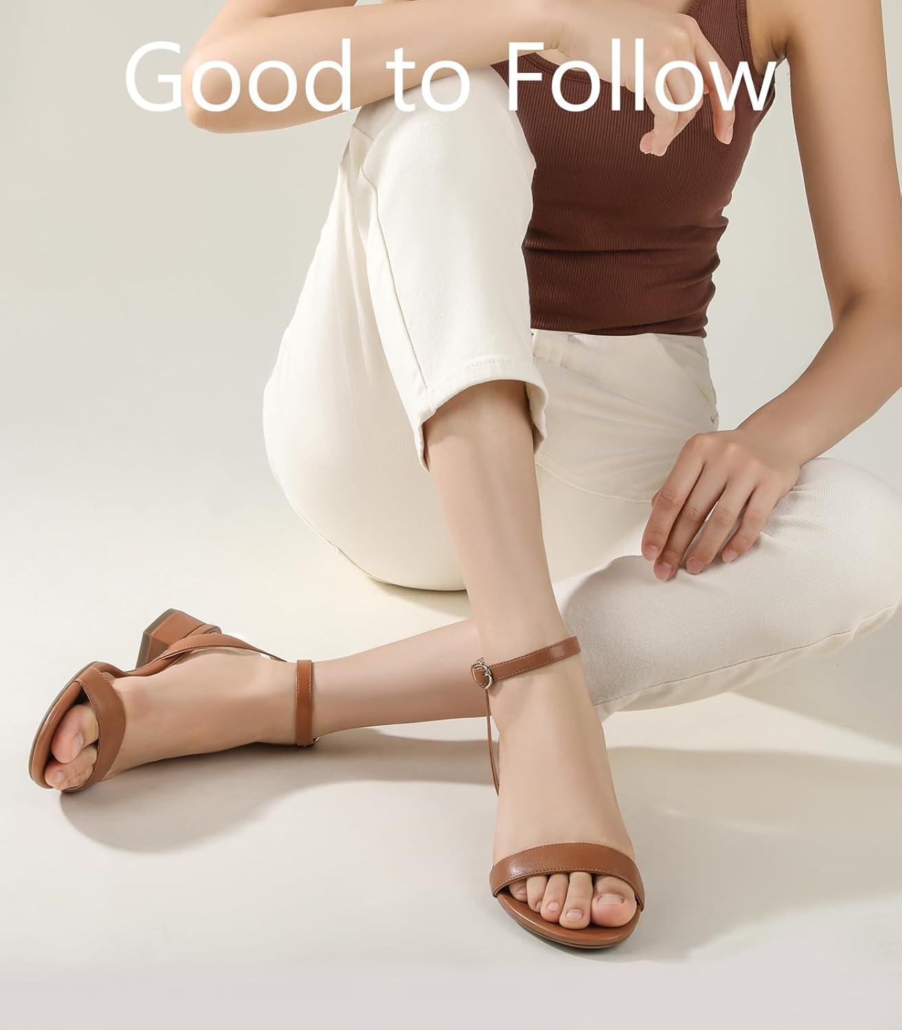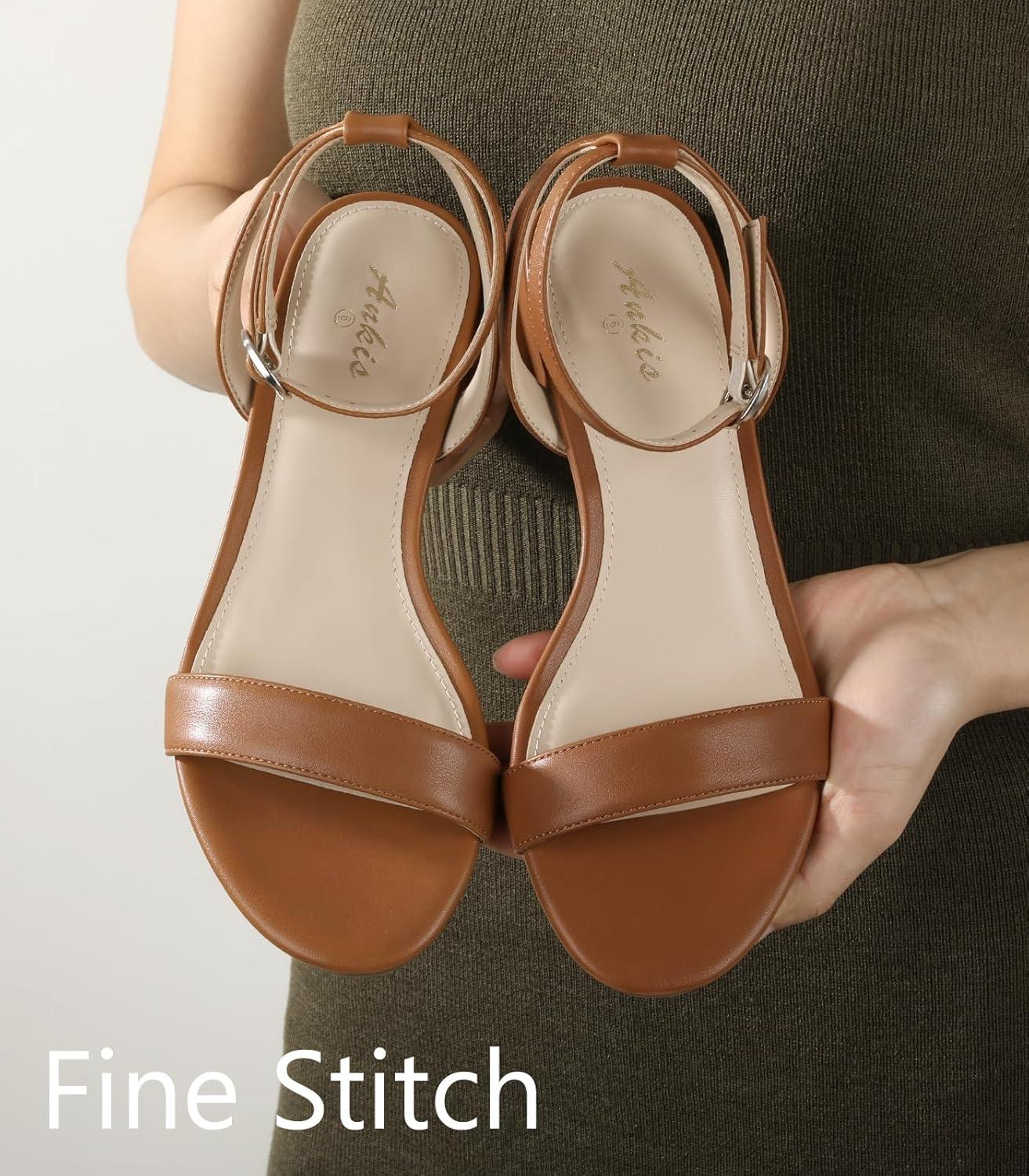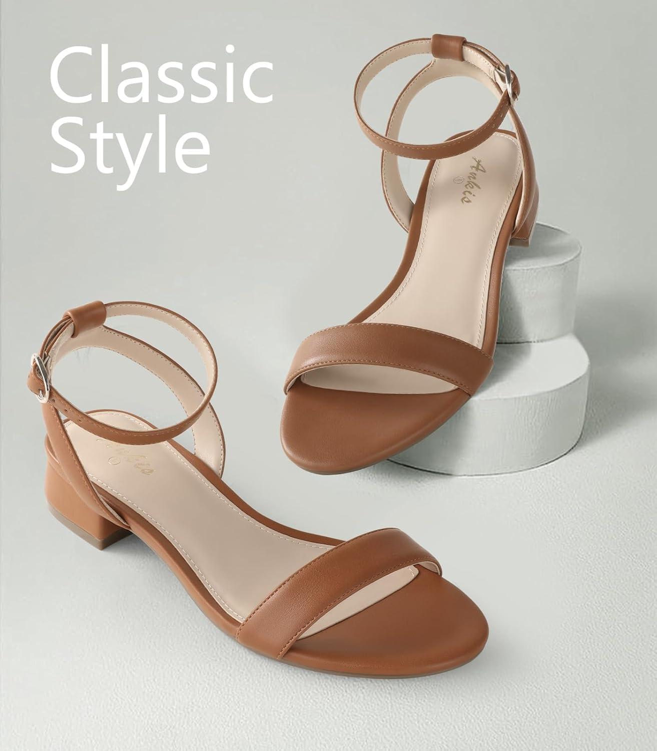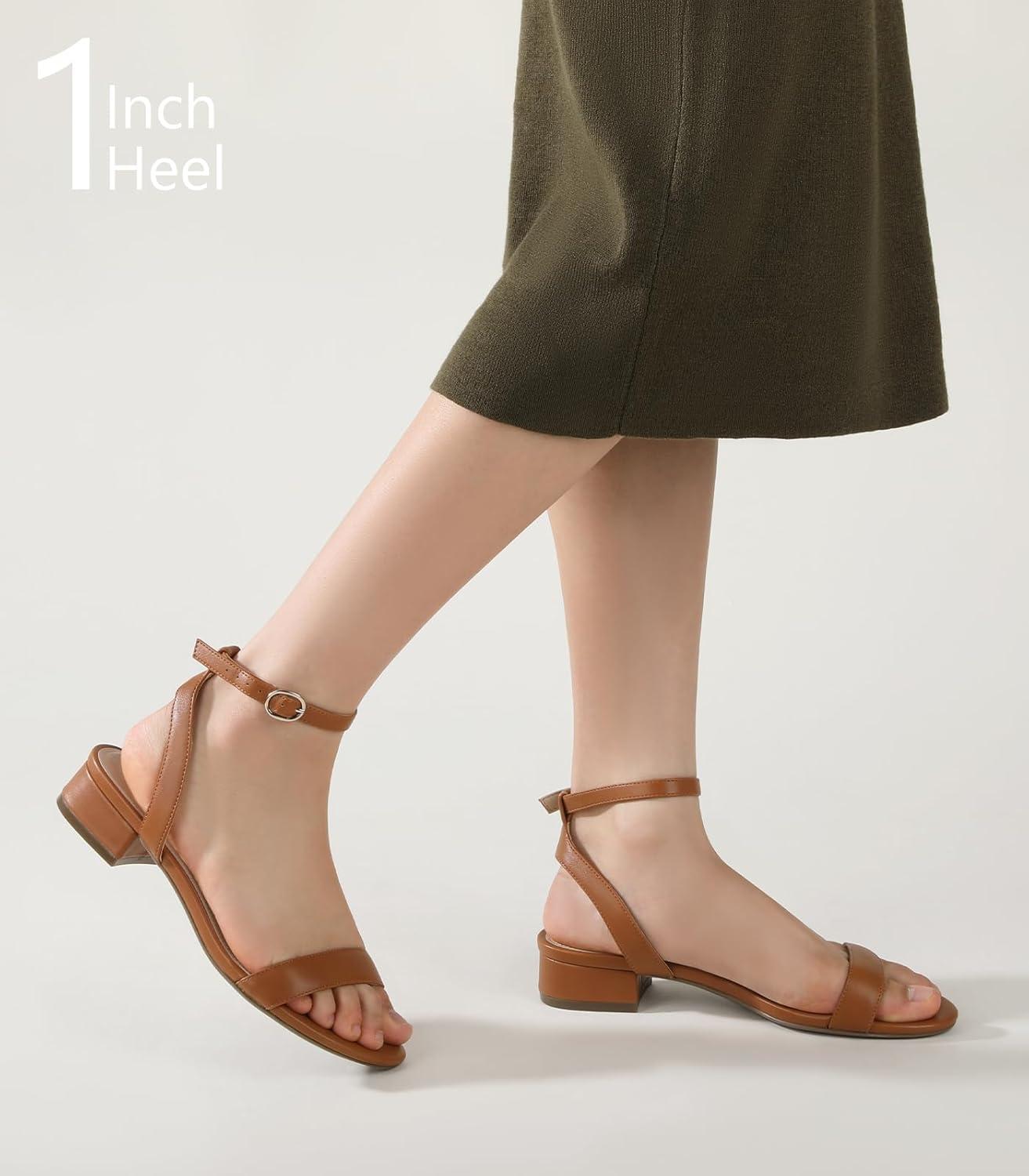 Ankis Black Nude White Red Women Sandals Comfortable Walking Strappy Open Toe Sandals for Women Dressy Summer 1 Inch Low block Heel Flat Adjustable Ankle Strap Wide Available Shoes 2025(Brown)