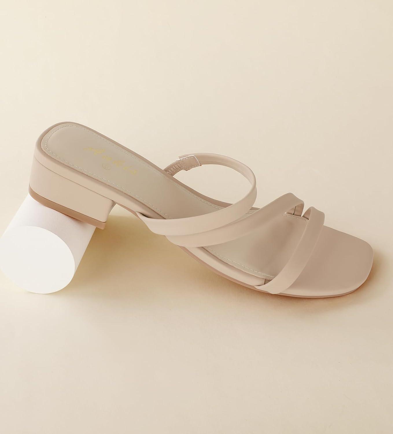 imageAnkis Black Nude White Strappy Heels Women 1 Inch Low Chunky Block Heel Heeled Sandals Square Open Toe Slip On Slides MulesNude Nubuck