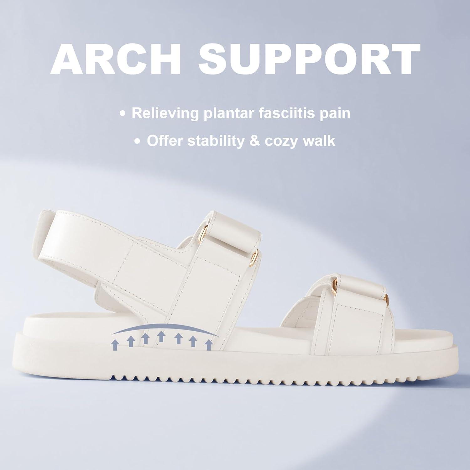 Ankis Black White Beige Nude Women’s Flat Sandals Comfort Adjustable Front Strap and with a Back Strap Women Summer Sandals(White)