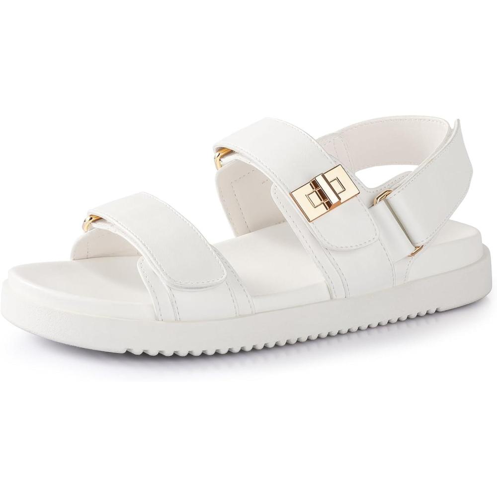 imageAnkis Black White Beige Nude Womens Flat Sandals Comfort Adjustable Front Strap and with a Back Strap Women Summer SandalsWhite