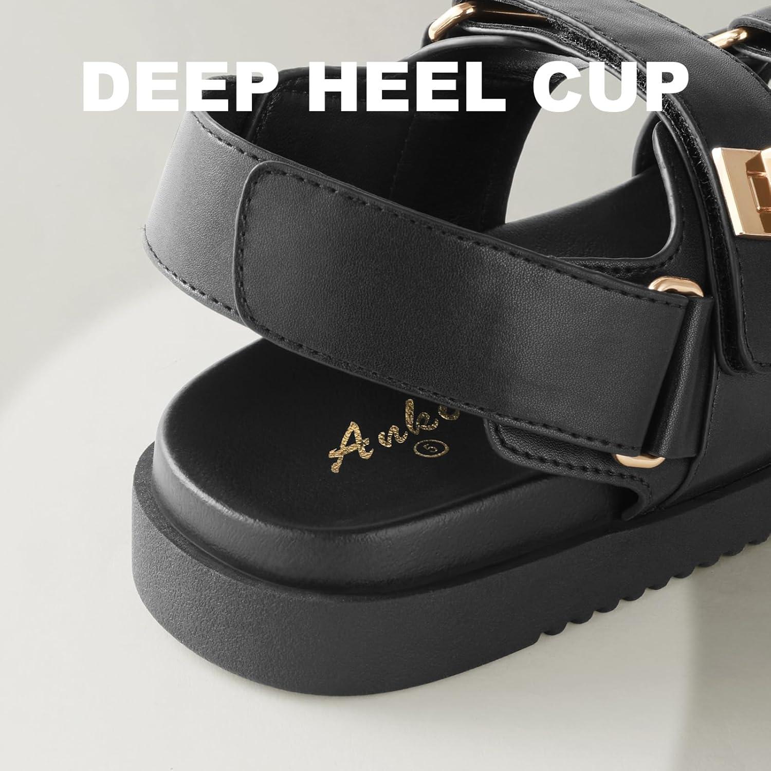 Ankis Black White Beige Nude Women's Flat Sandals Comfort Adjustable Front Strap and with a Back Strap Women Summer Sandals(Black)
