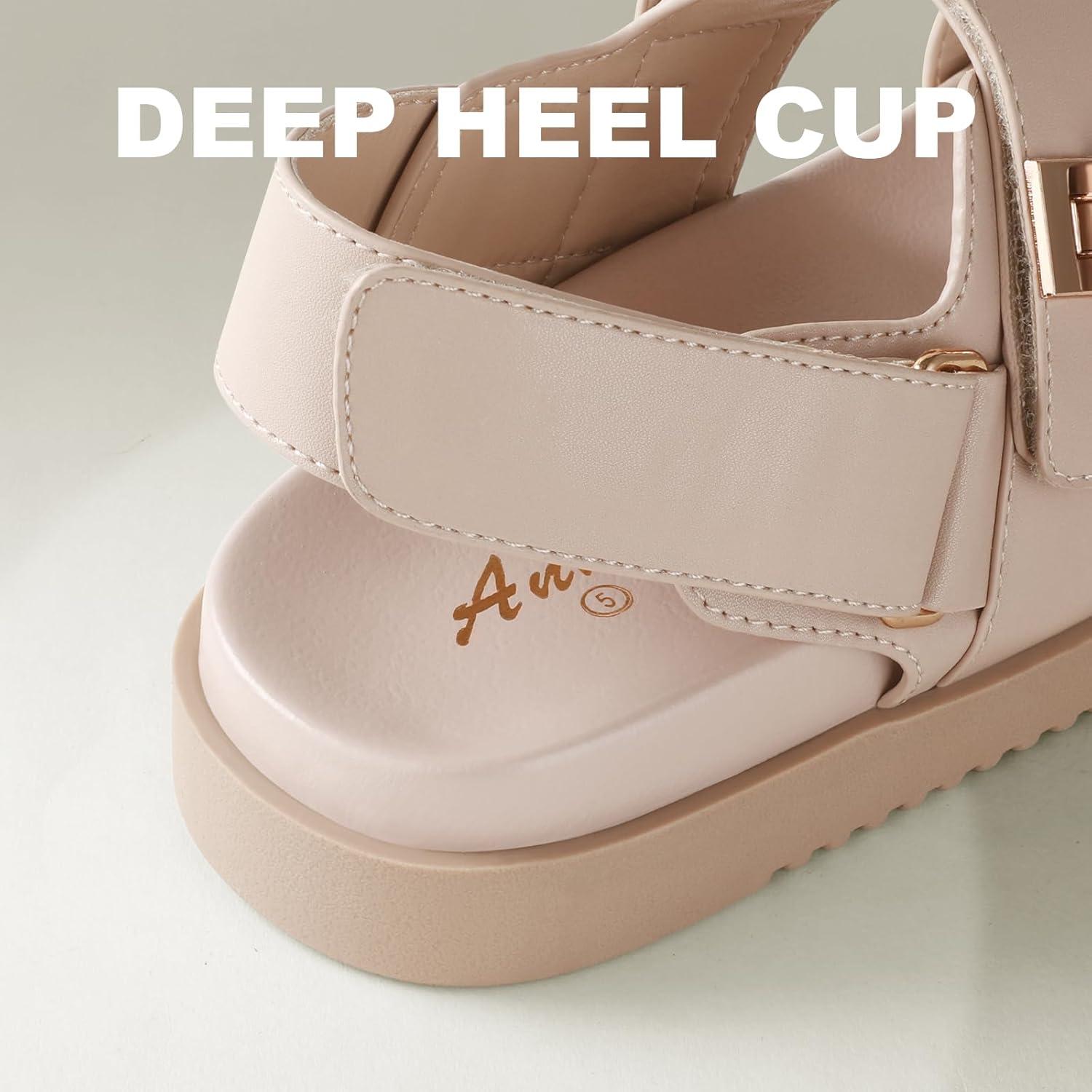 Ankis Black White Beige Nude Women's Flat Sandals Comfort Adjustable Front Strap and with a Back Strap Women Summer Sandals(Nude)