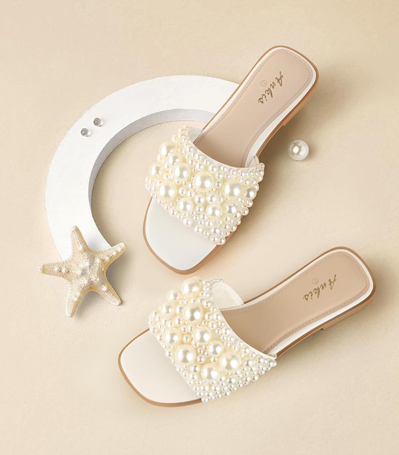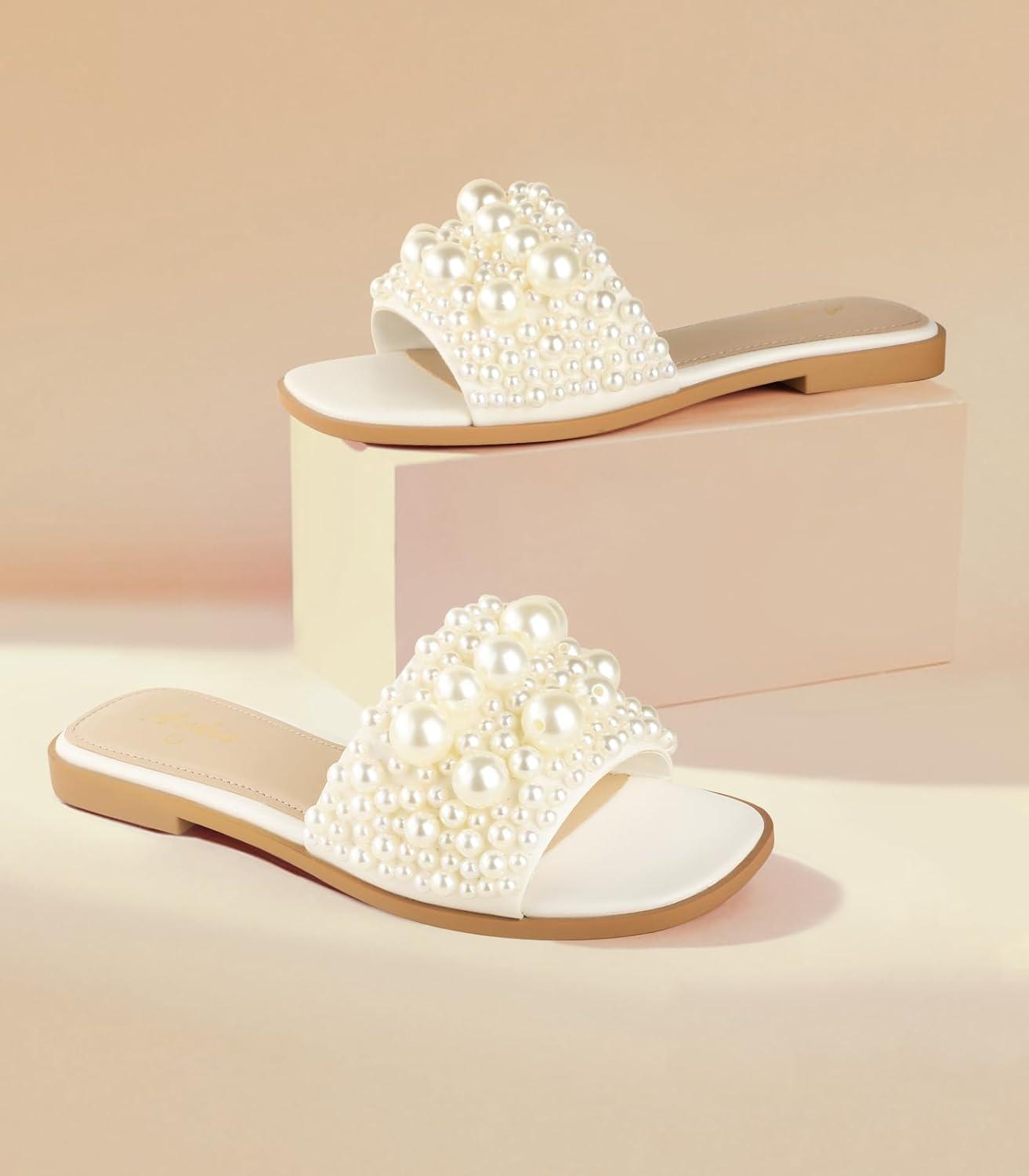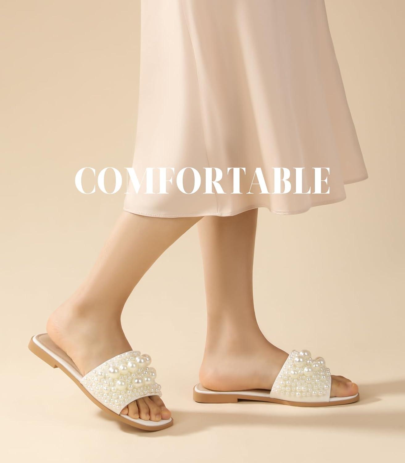 Ankis Black White Sandals Women Flat Sandals Comfortable Womens Slide Sandals Fashion Flat Sandals for Women 2025 Summer(White)