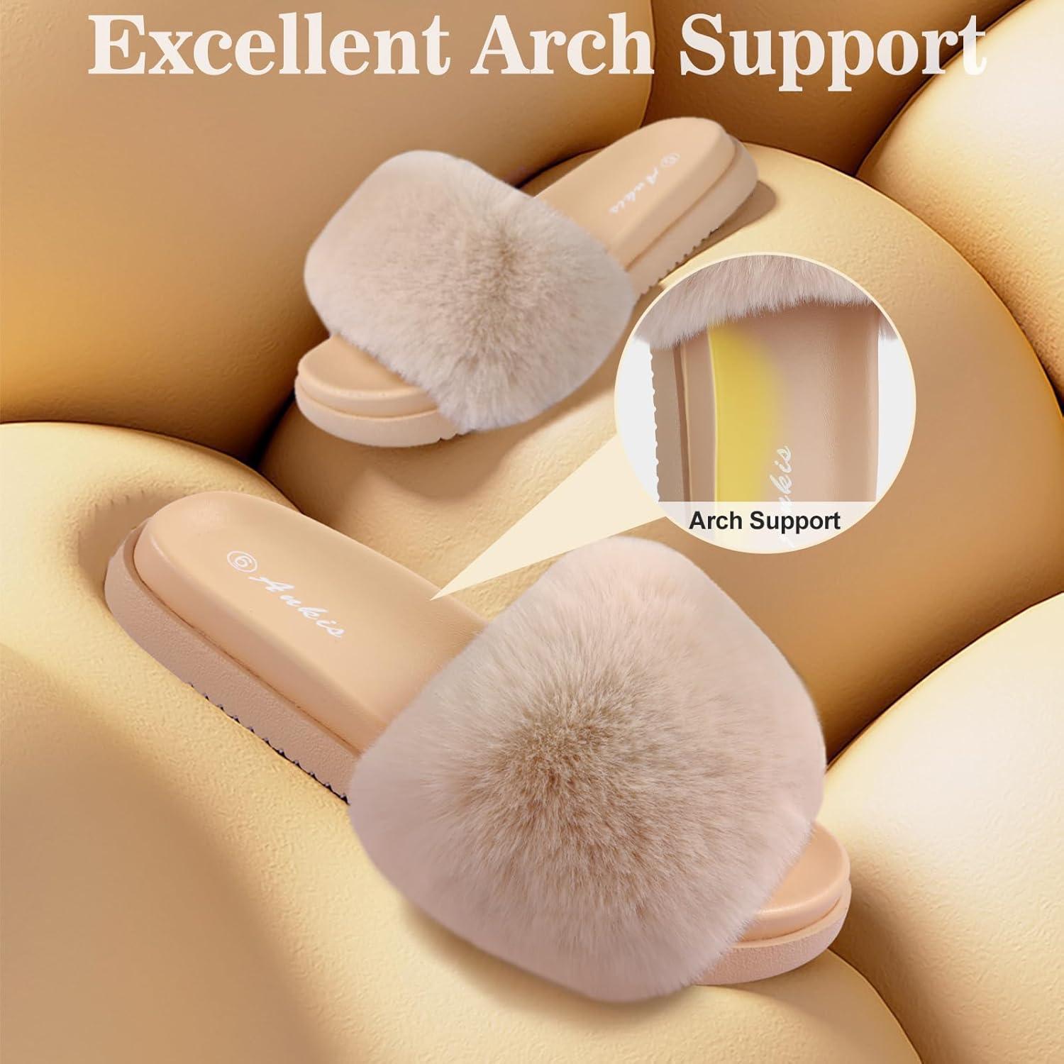 imageAnkis Women Camel Fuzzy Fluffy Slippers Soft Cozy Plush Memory Foam Slipper Open Toe Bedroom Comfy Platform Slippers for Womens
