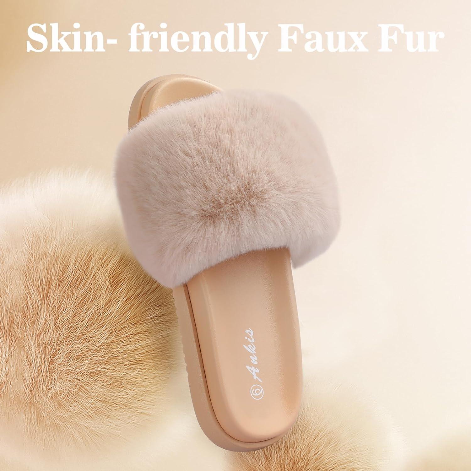 imageAnkis Camel Fur SlidesCute Chic Versatile Pretty Soft Platform Slides Open Toe Nonslip Womens House Fluffy Slippers Fuzzy Slippers for Women Indoor Outdoor All Seasons