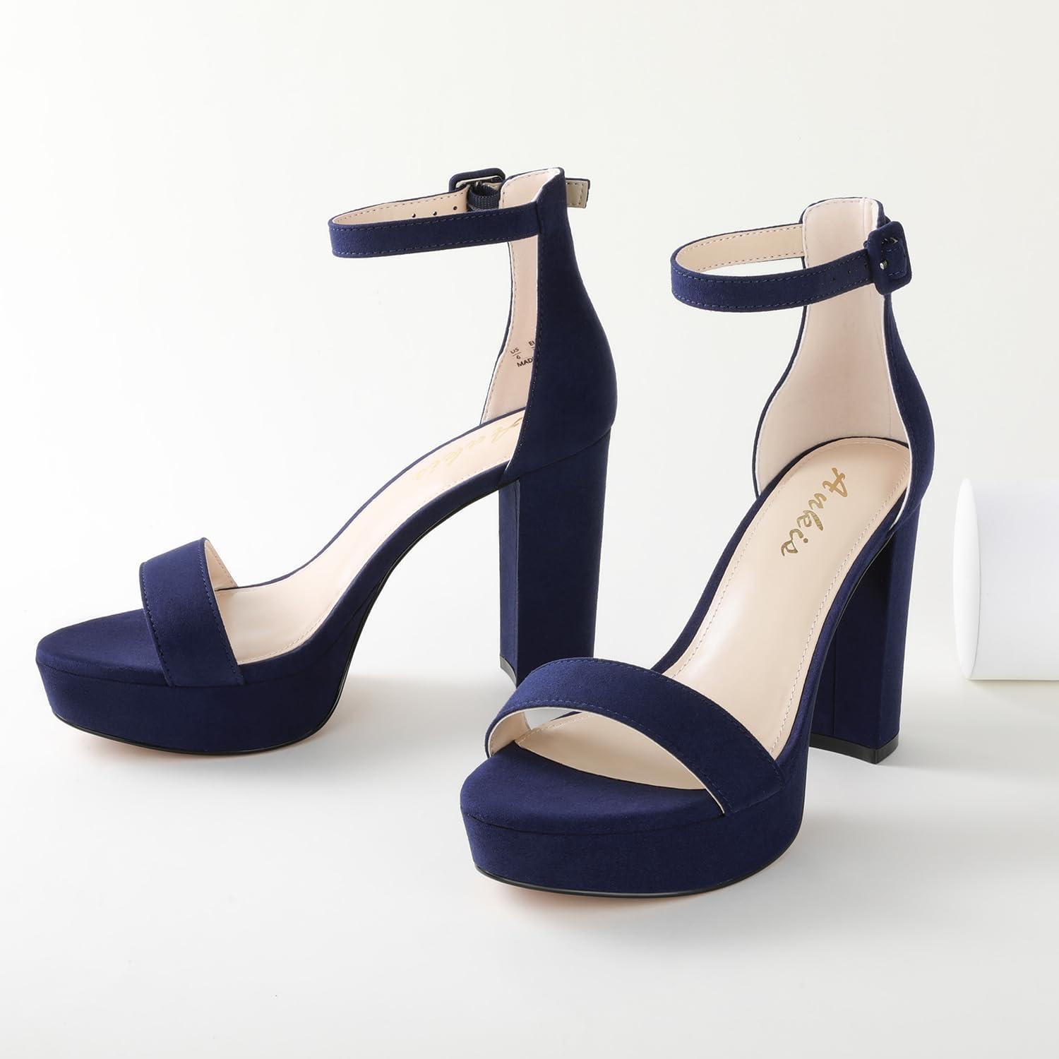 imageAnkis Chunky Platform Heels  4 Inch Block Heeled Sandals for Women  Comfortable Open Toe Strappy Heels  Black Nude White Silver Gold  Summer Dress ShoesI Navy Suede
