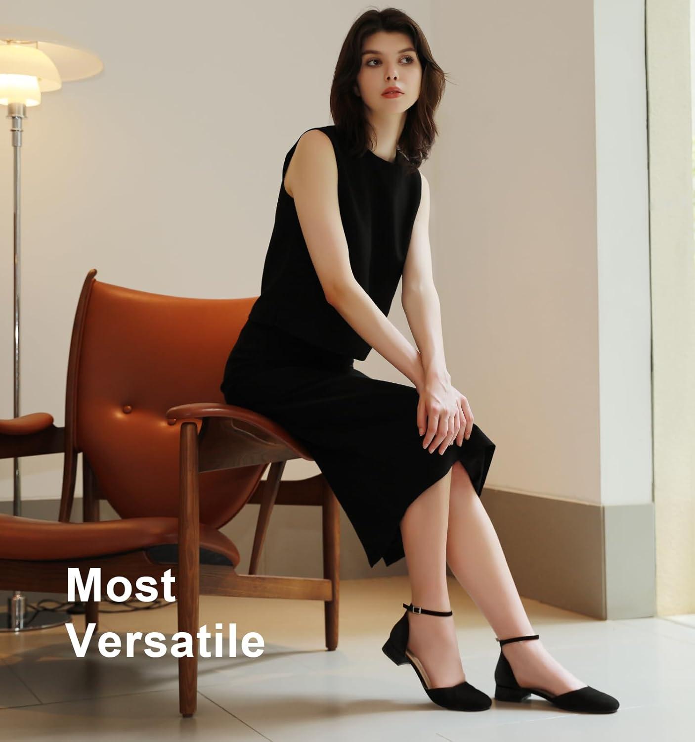 imageAnkis Closed Toe Heels for Women Black Nude White Gold Silver 1 Inch Womens Flats Low Block Heel Women Dress Shoes Womens Pumps Work Shoes with Ankle Strap for Spring FallBlack Nubuck
