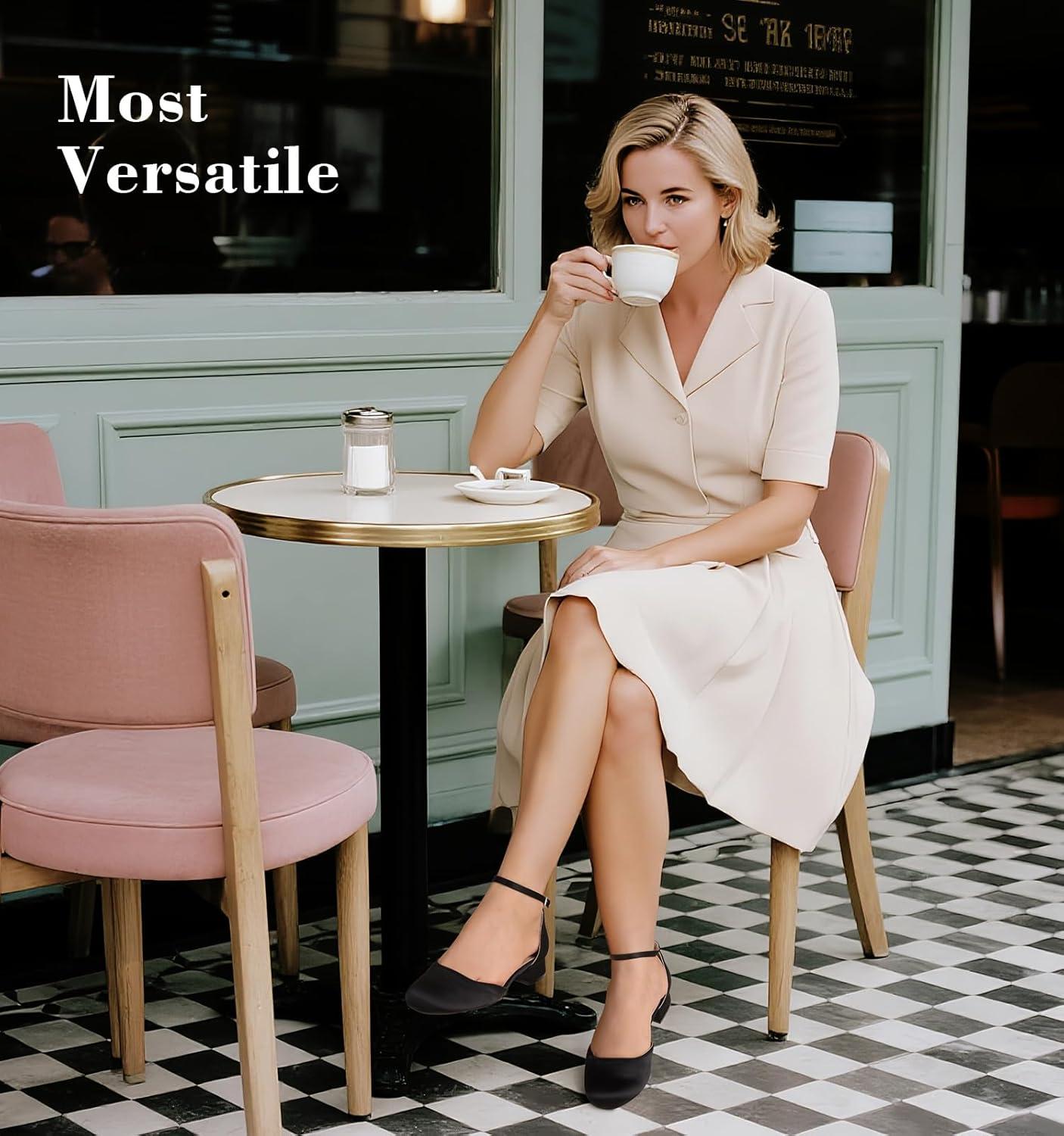 imageAnkis Closed Toe Heels for Women Black Nude White Gold Silver 1 Inch Womens Flats Low Block Heel Women Dress Shoes Womens Pumps Work Shoes with Ankle Strap for Spring FallBlack Satin