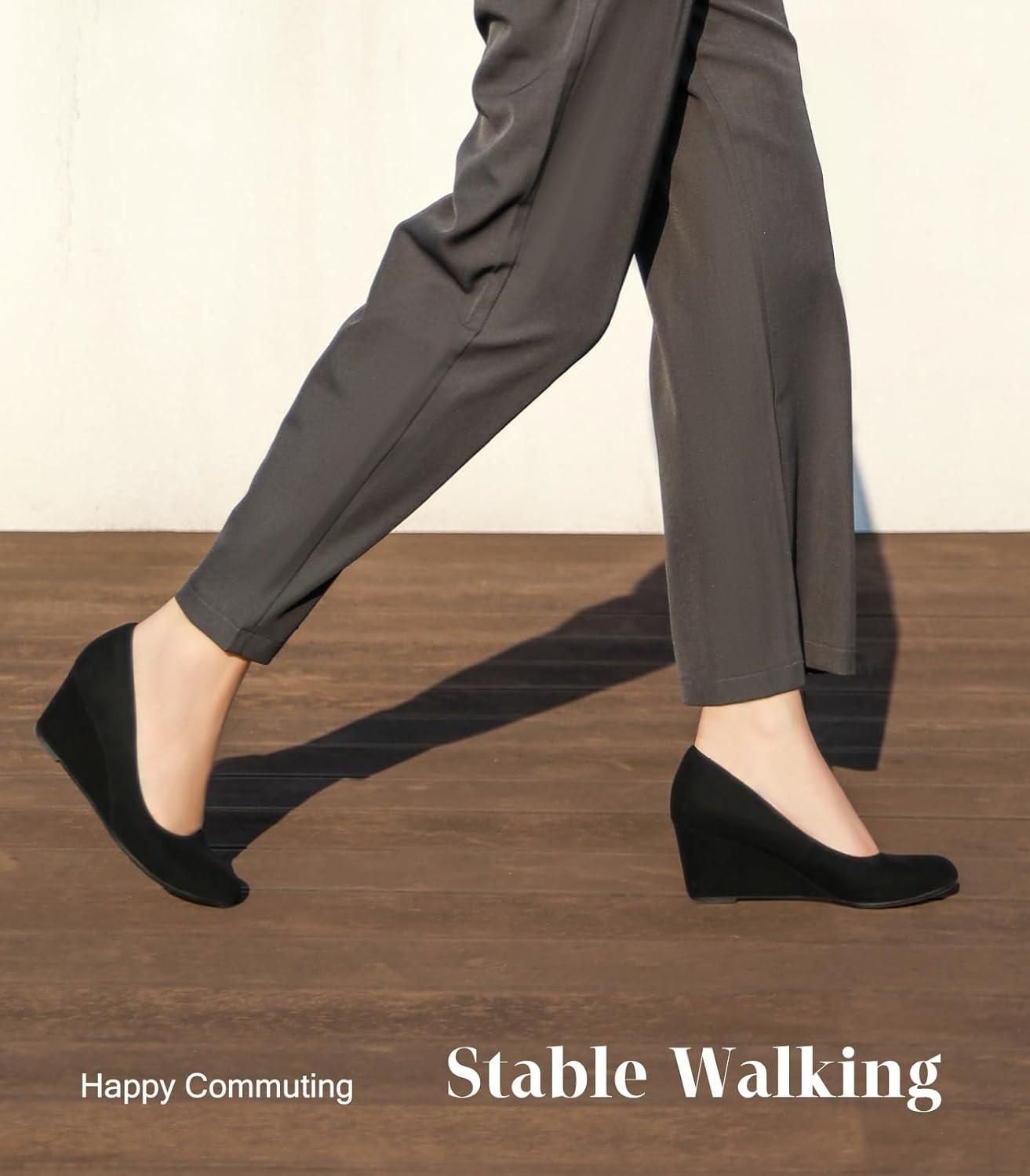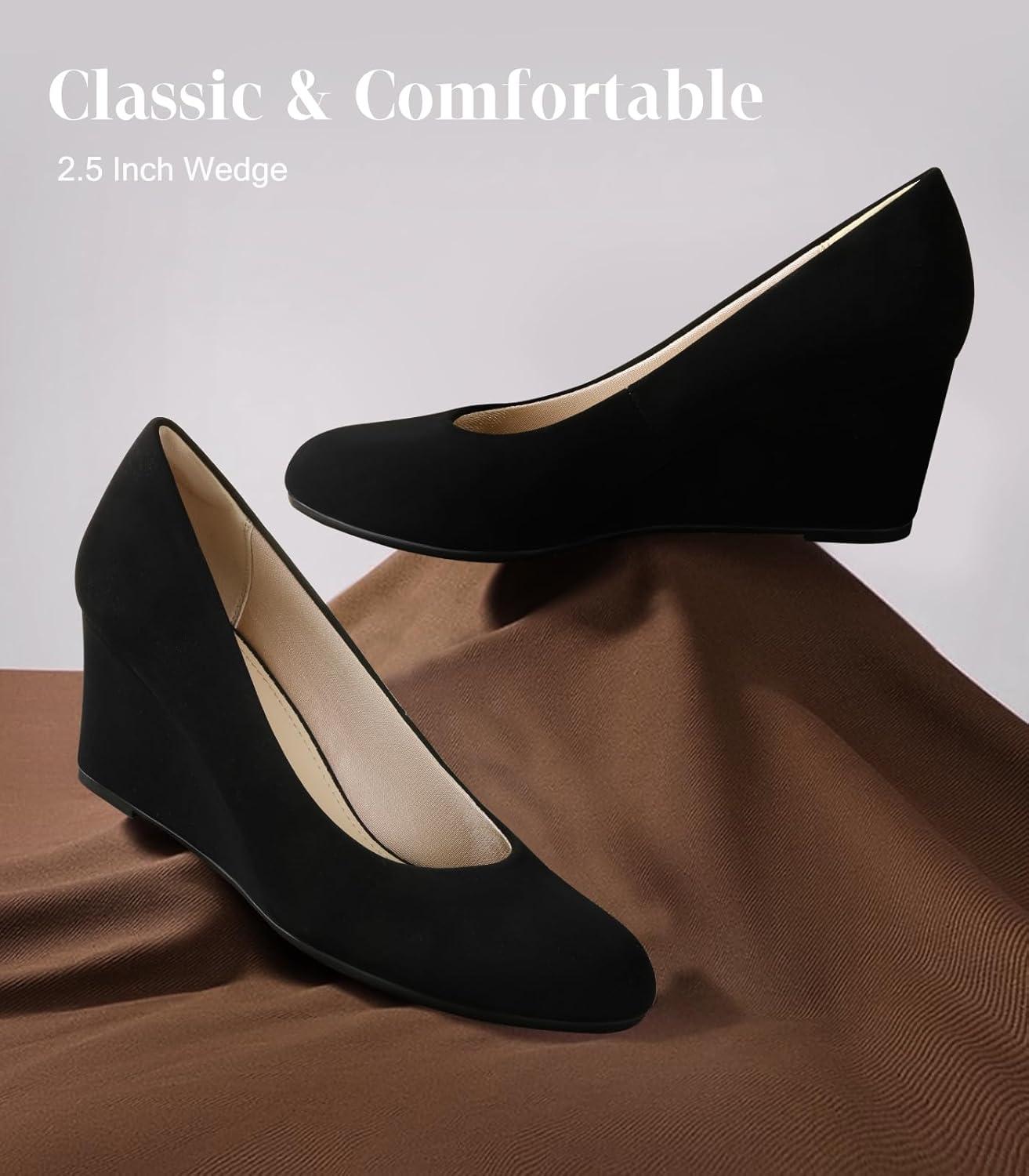 Ankis Closed Toe Wedges for Women, Black Nude Gold Silver Wedges Heels for Women Comfortable Medium Heel Wedges Work Pumps Shoes for Dressy Spring Fall – 2.5Inch(Black Nubuck)