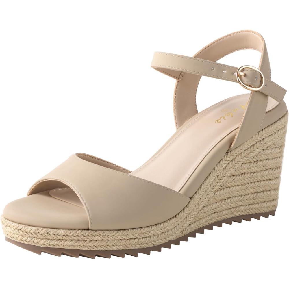 imageAnkis Espadrilles Wedges Sandals for Women Wedge Platform Sandals Heels Peep Open Toe Comfortable Ankle Strap Buckle Summer Wedge HeelsNude Nubuck