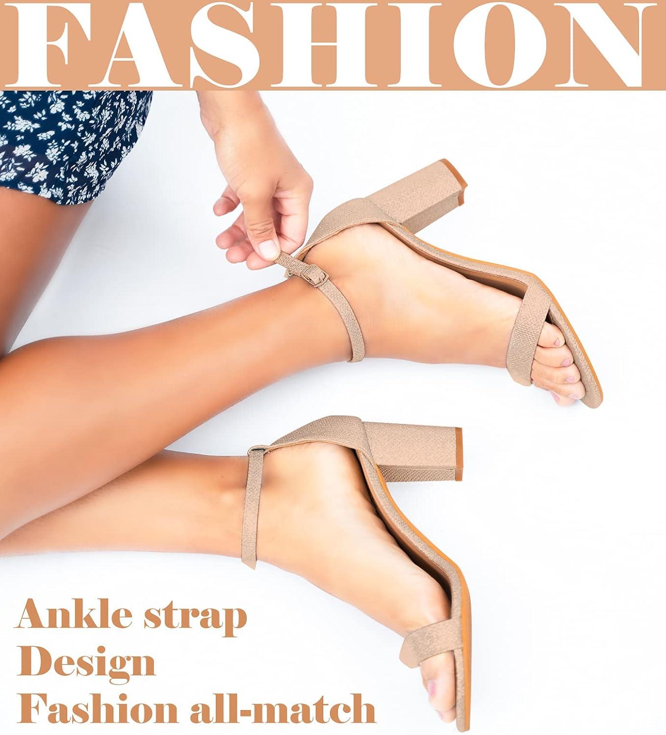 Ankis Heels for Women Open Toe Ankle Strap Chunky Heel Sandals 2.75 Inch(Beige)