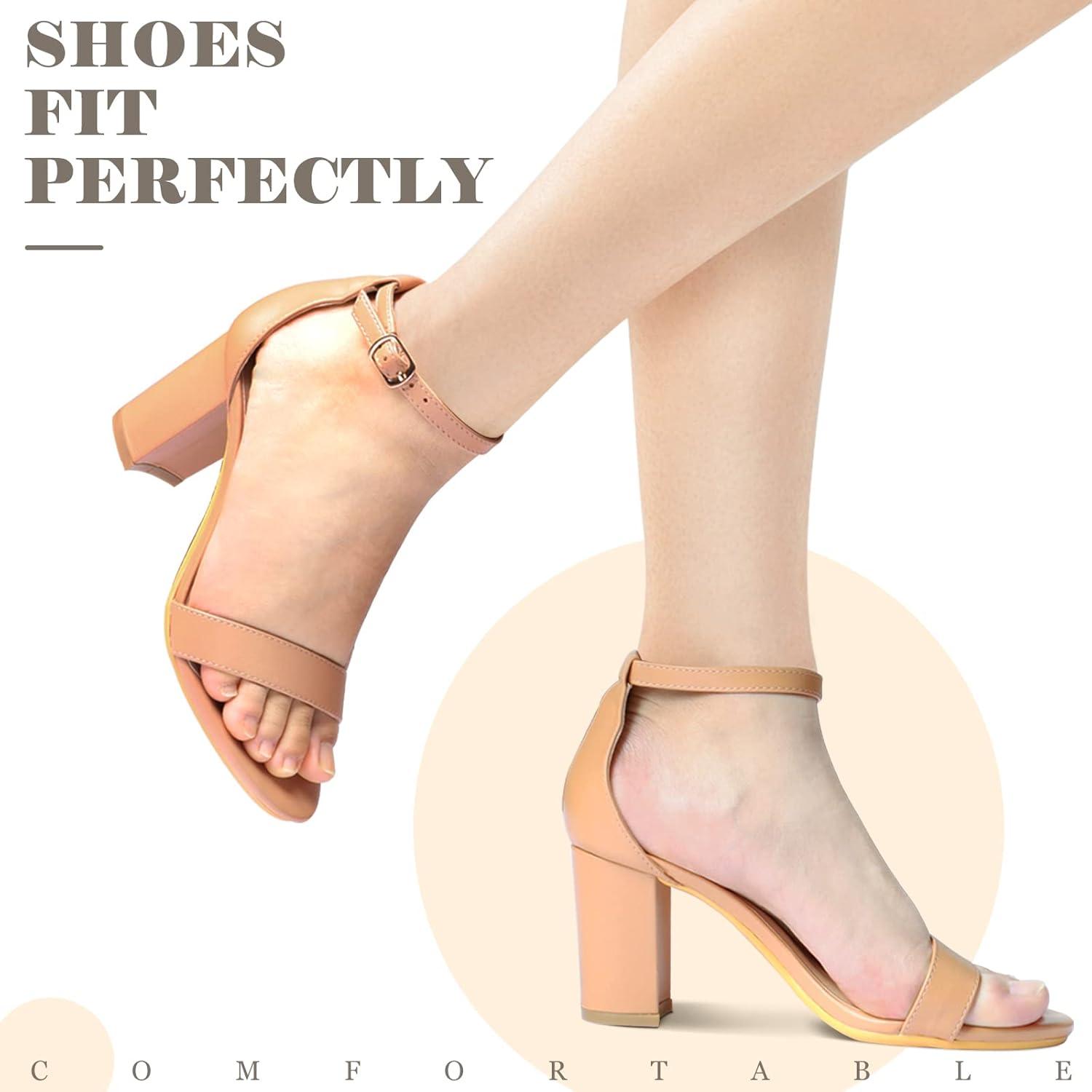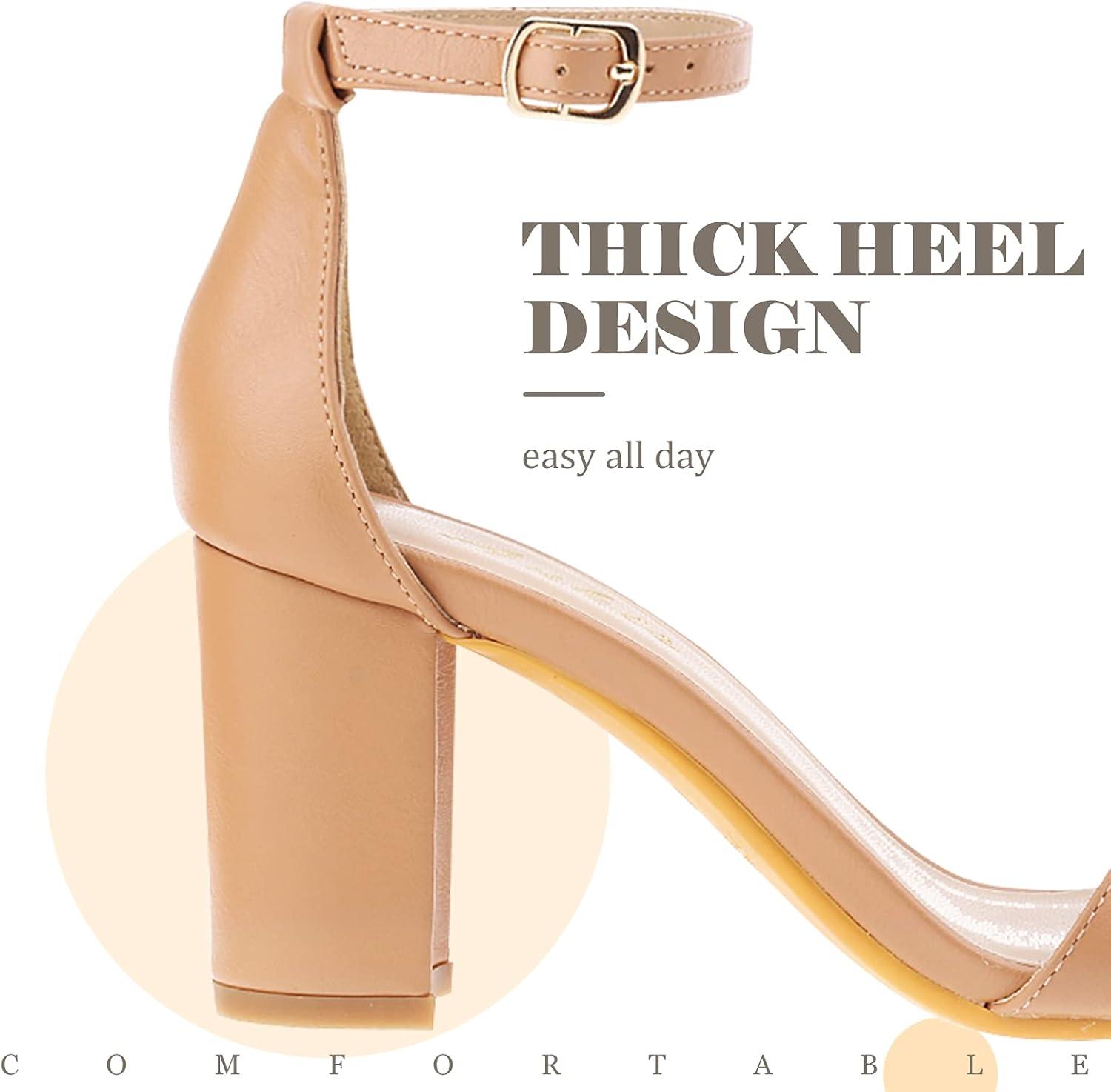 Ankis Heels for Women Open Toe Ankle Strap Chunky Heel Sandals 2.75 Inch(Nude Pu)