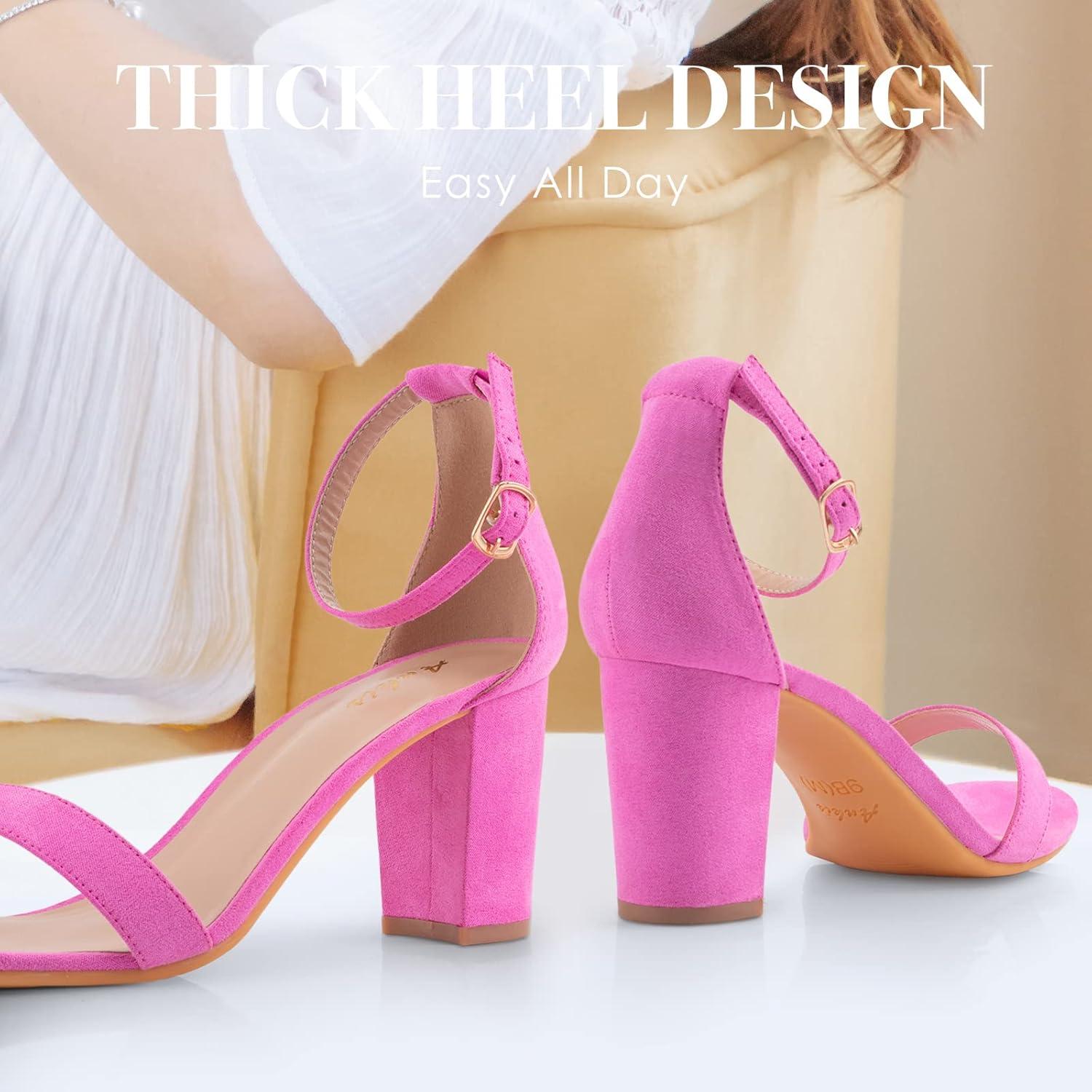 Ankis Heels for Women Open Toe Ankle Strap Chunky Heel Sandals 2.75 Inch(Pink Suede)