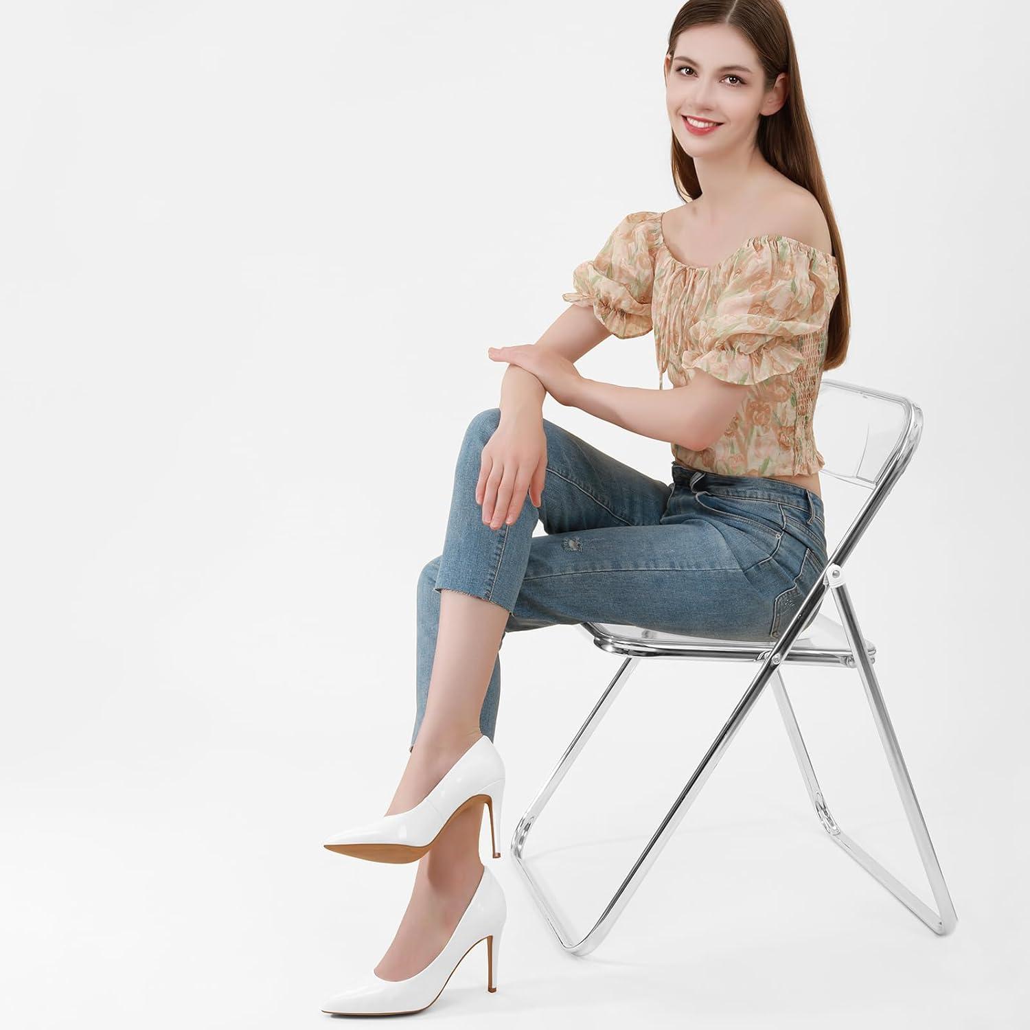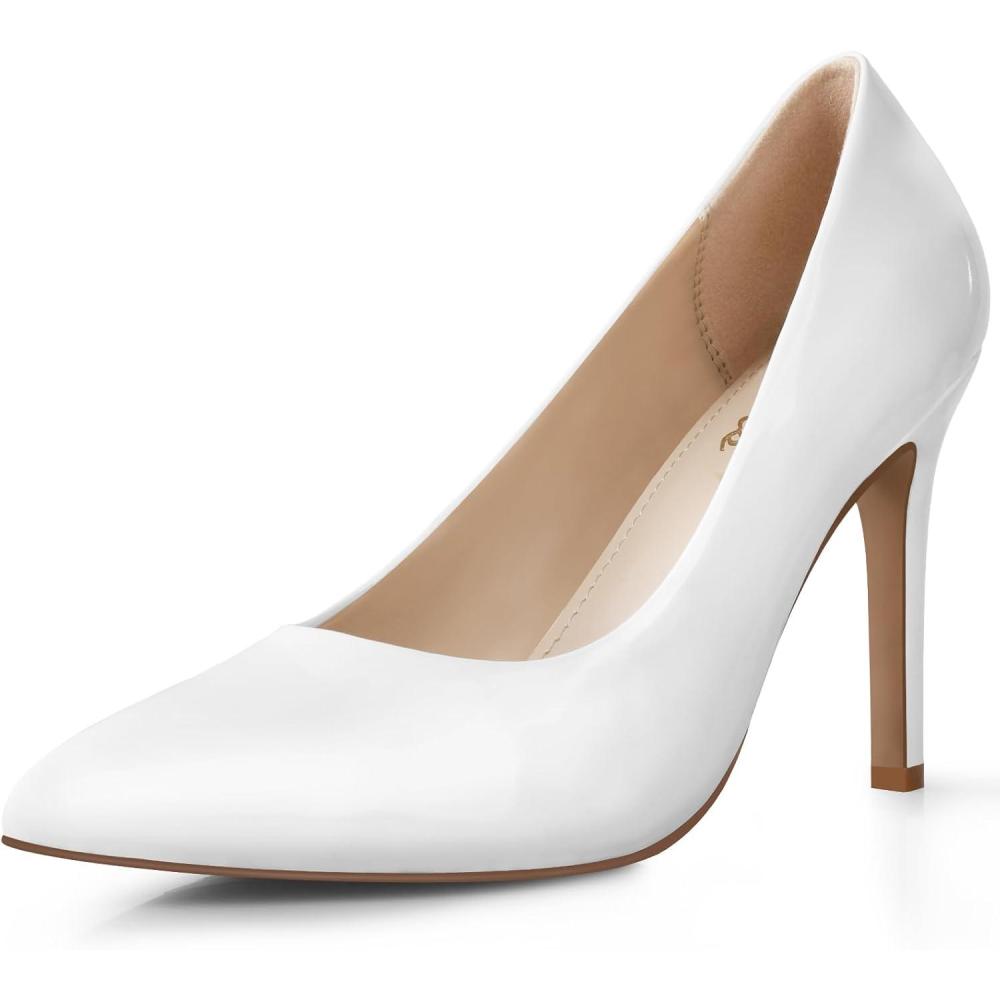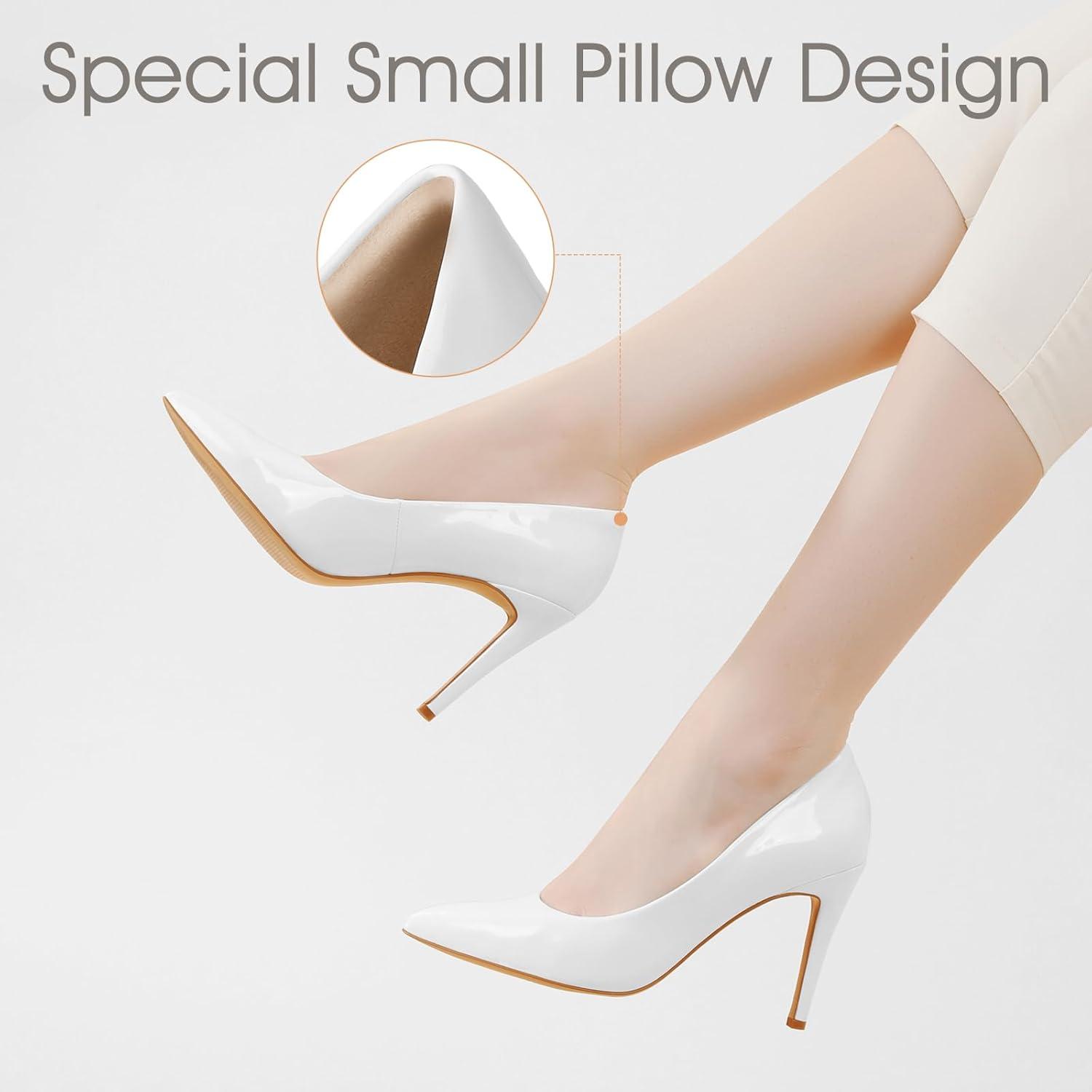 Ankis High Heel Women's Pumps, Black Sliver White Blue Heels Closed Toe, Pointed Toe 4in Stiletto Heel for Women, Comfy Memory Foam Pump Shoe, Party Wedding Work Classic Dressy Casual with Gel Insoles(White Pat)
