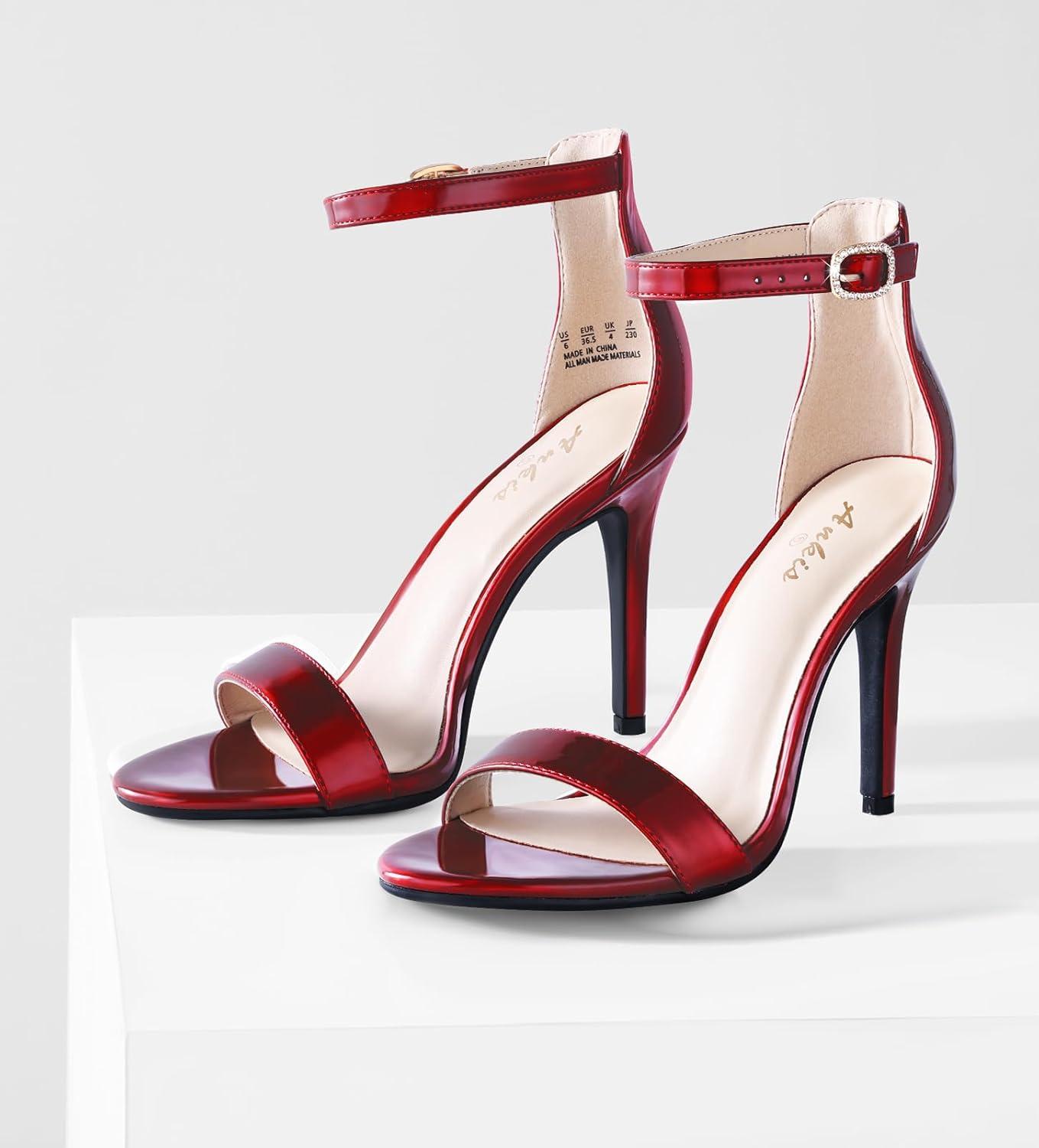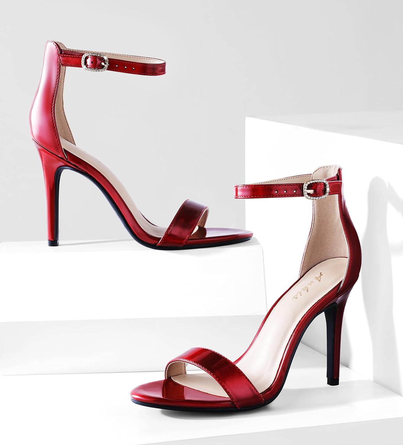 imageAnkis High Heels for Women 4 Inches Black Nude Gold Stiletto Heels Open Toe Ankle Strap Heeled Sandals for Dressy Wedding PartyRed Pat