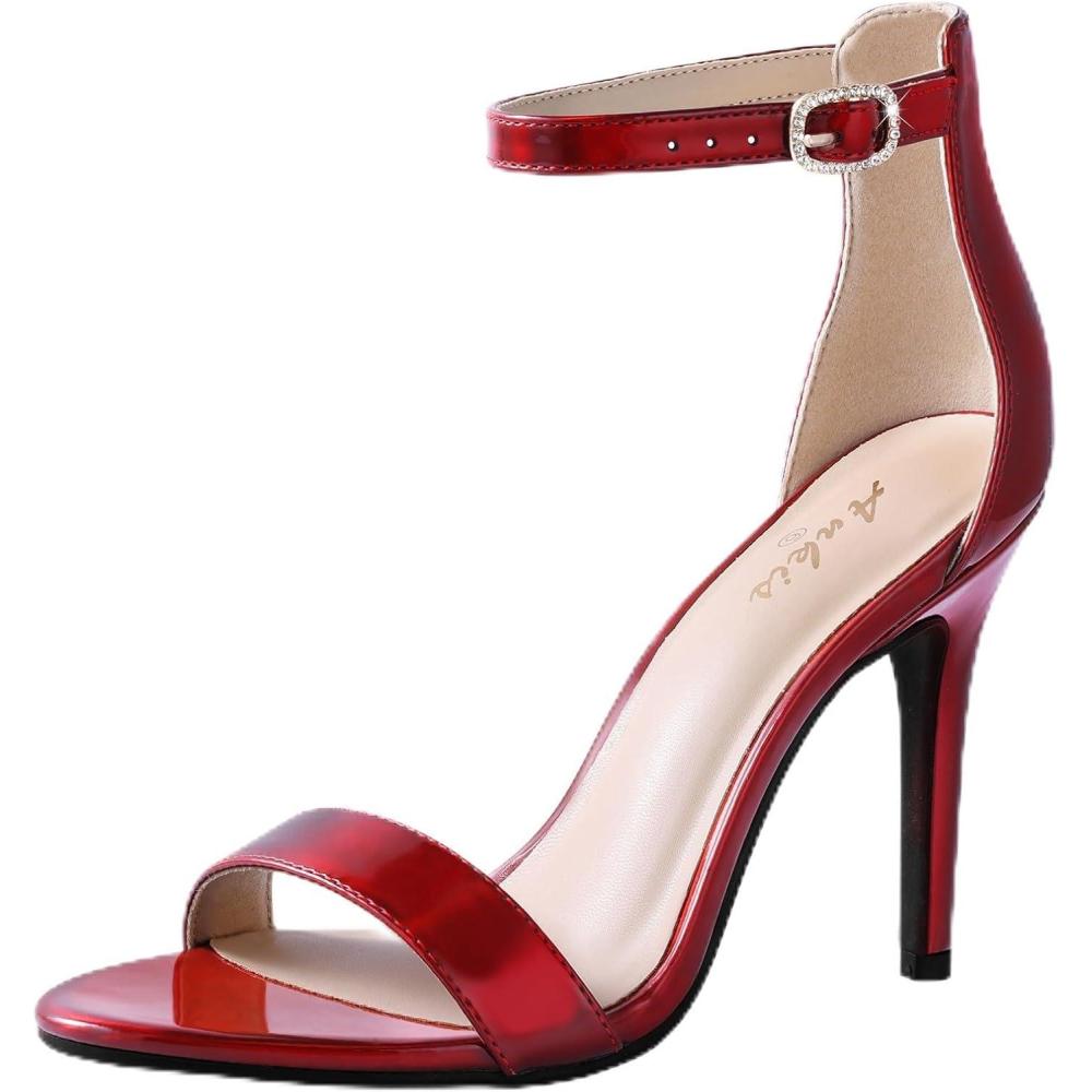 Ankis High Heels for Women 4 Inches, Black Nude Gold Stiletto Heels Open Toe Ankle Strap Heeled Sandals for Dressy Wedding Party(Red Pat)