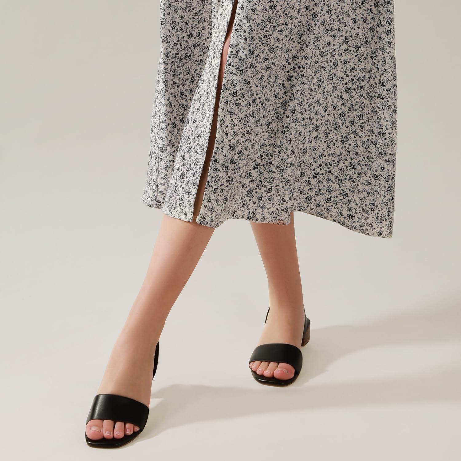 imageAnkis Low Heel Women Sandal Square Open Toe Brown Black White Leather Flat Sandal Comfortable Summer Slip on Slide Shoe Casual Beach Party Wedding 2025Black