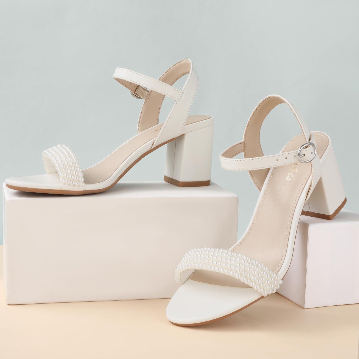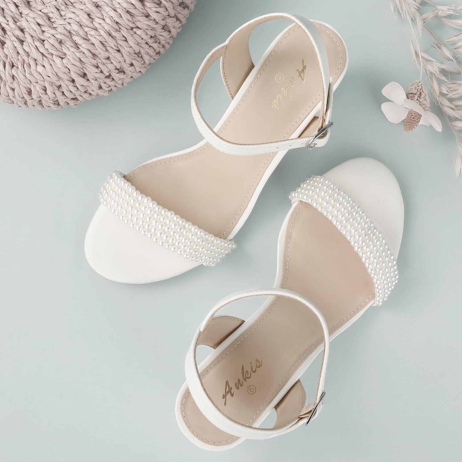 imageAnkis Nude Black Heels 25 Block Chunky White Clear Silver Heel Dressy Open Toe Heels For Women Ankle Strap Low Short Thick Strappy Dress Comfortable Sandal Casual Party Wedding Event Summer ShoesWhite Pearl