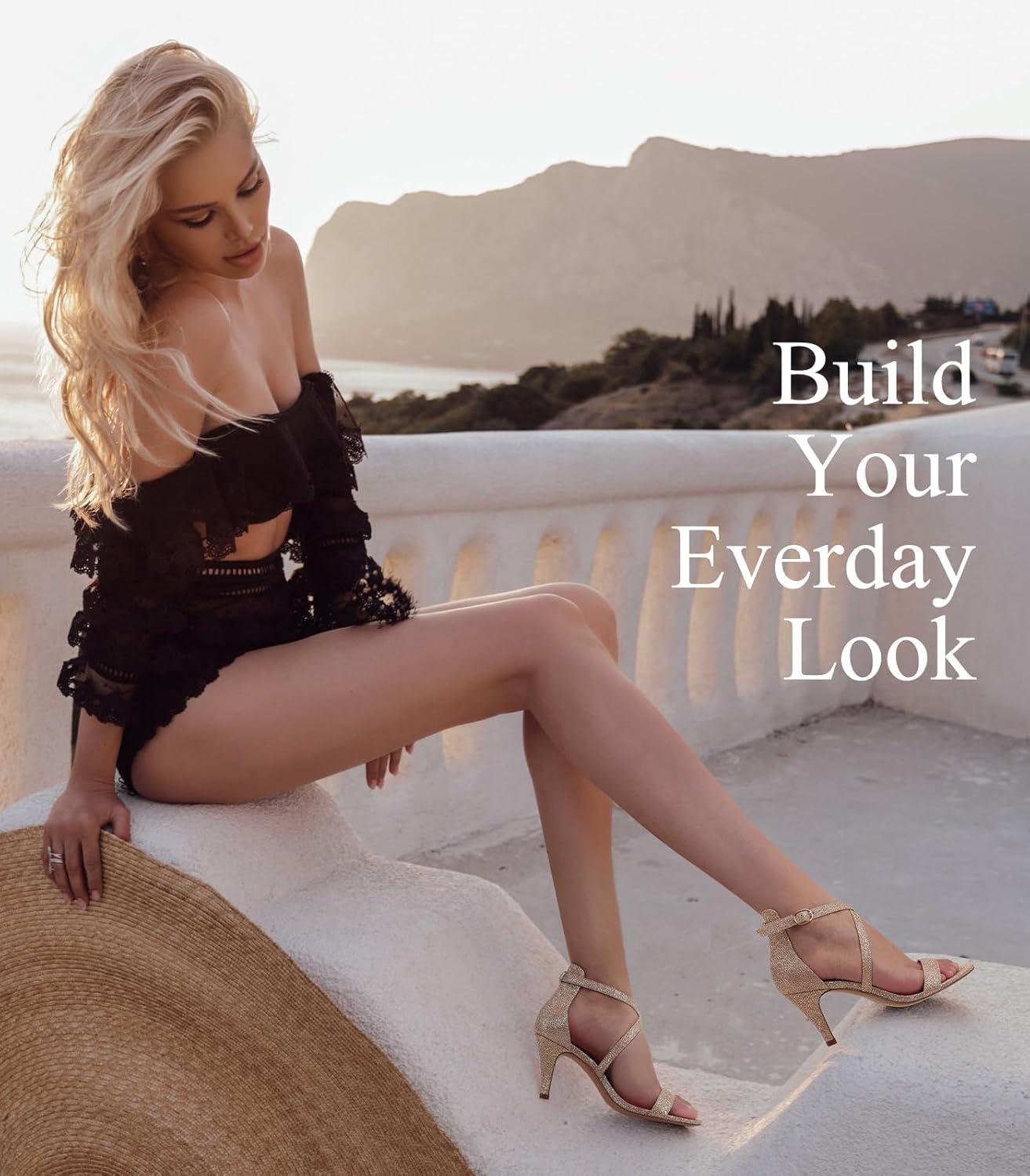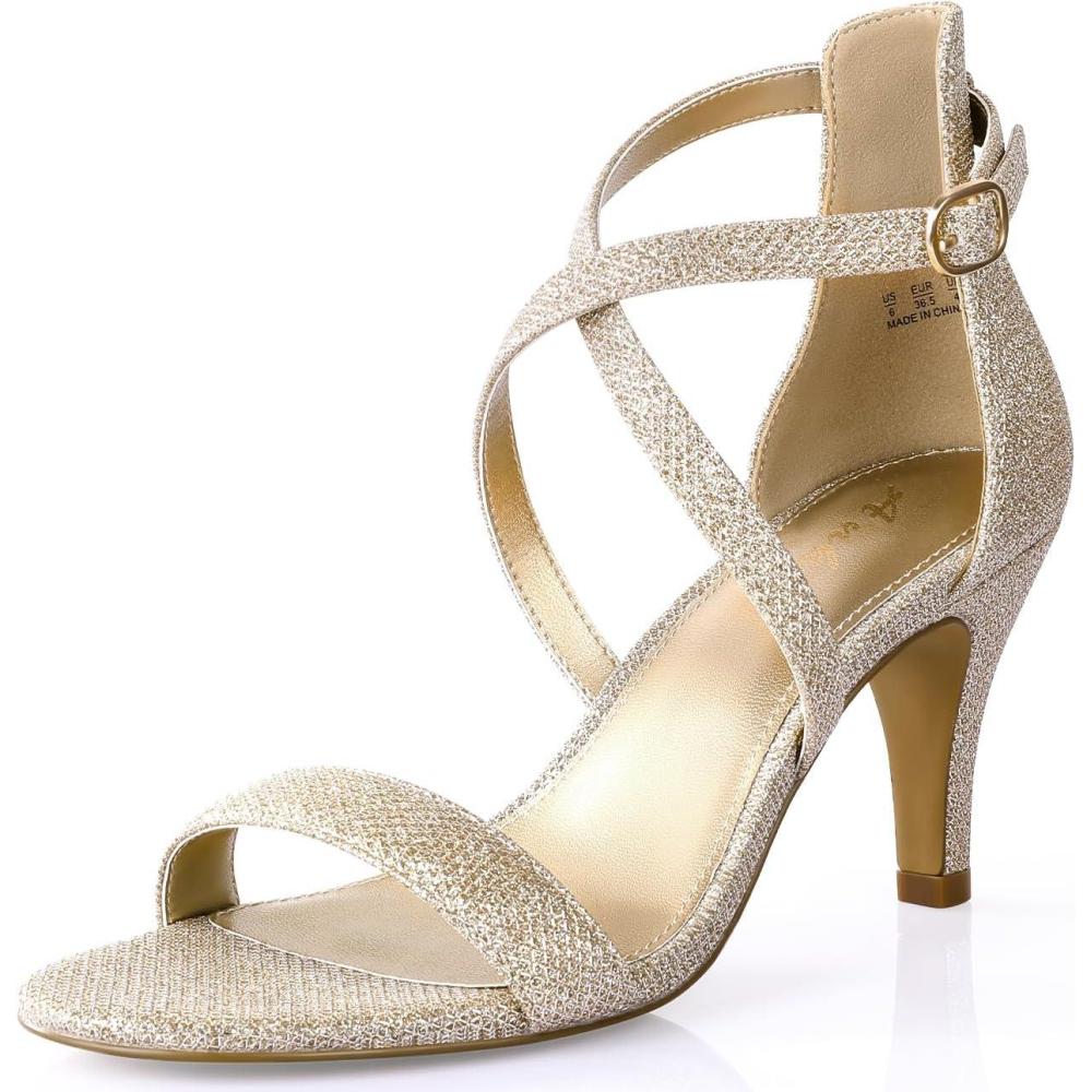 imageAnkis Nude Gold Black Heels Strappy Heels for Women 3 Inch Stiletto Open Toe Sandals for Wedding Evening Party HomecomingGold Fabric