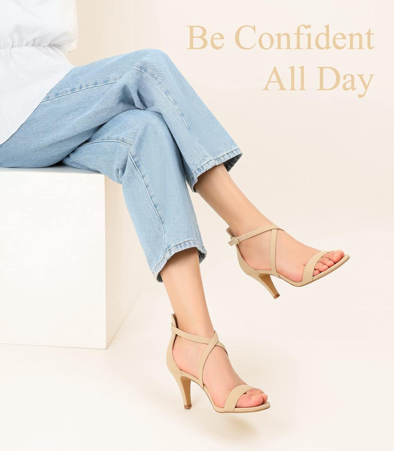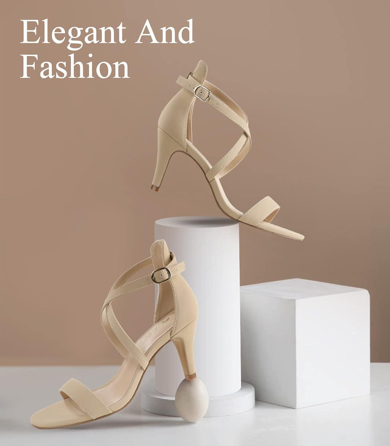 imageAnkis Nude Gold Black Heels Strappy Heels for Women 3 Inch Stiletto Open Toe Sandals for Wedding Evening Party HomecomingNude Nubuck