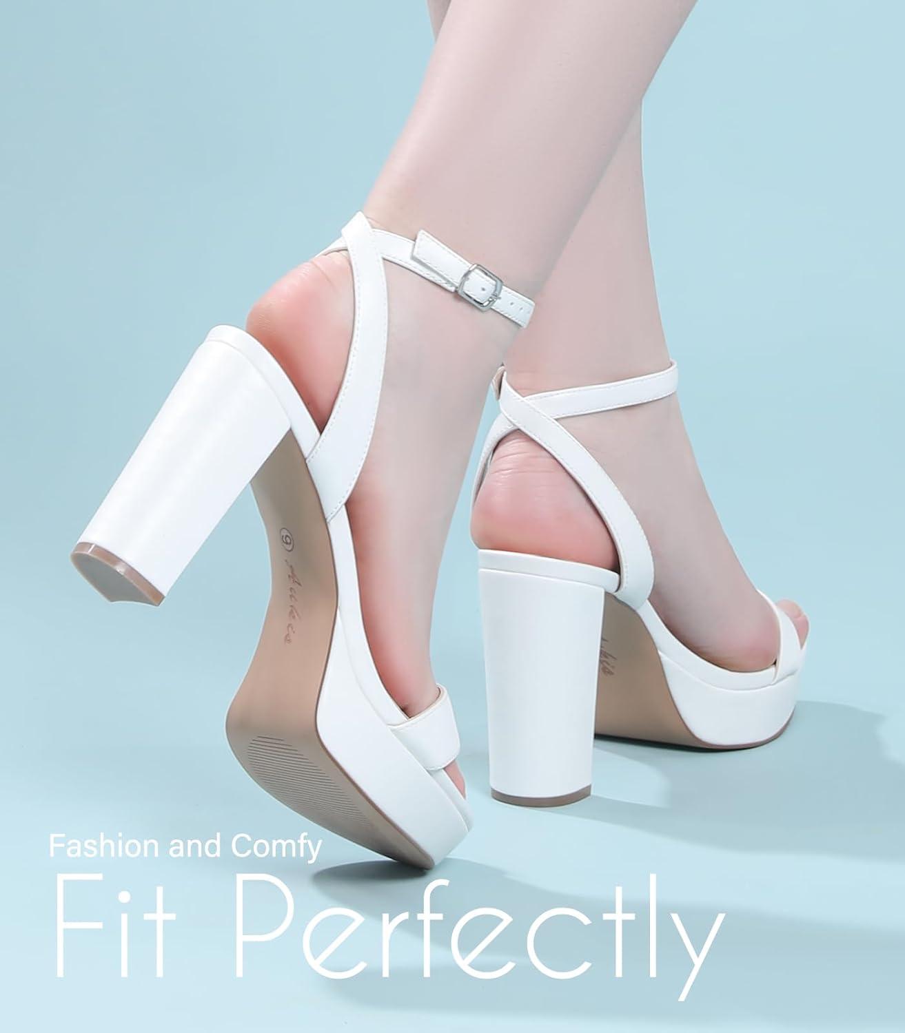Ankis womens platform heels are made of high quality materials to make a secure fit. We are focus on the healthy and beauty to optimize the arch support and platform. Memory foam padded toe strap, soft adjustable ankle strap,gentle foot arch,4 inches block chunky heels and light-weight Meinai sole, these features ensure our Ankis platform chunky heels comfortable and elegant. You will be free and easy to walk in this cute high heels without pain. This 4 inches open toe block heeled sandals fits for all seasons. it's a must-have option for party, wedding, prom and homecoming shoes. Ankis 4 inches strappy heels for women ensures you enjoy beauty in comfy.