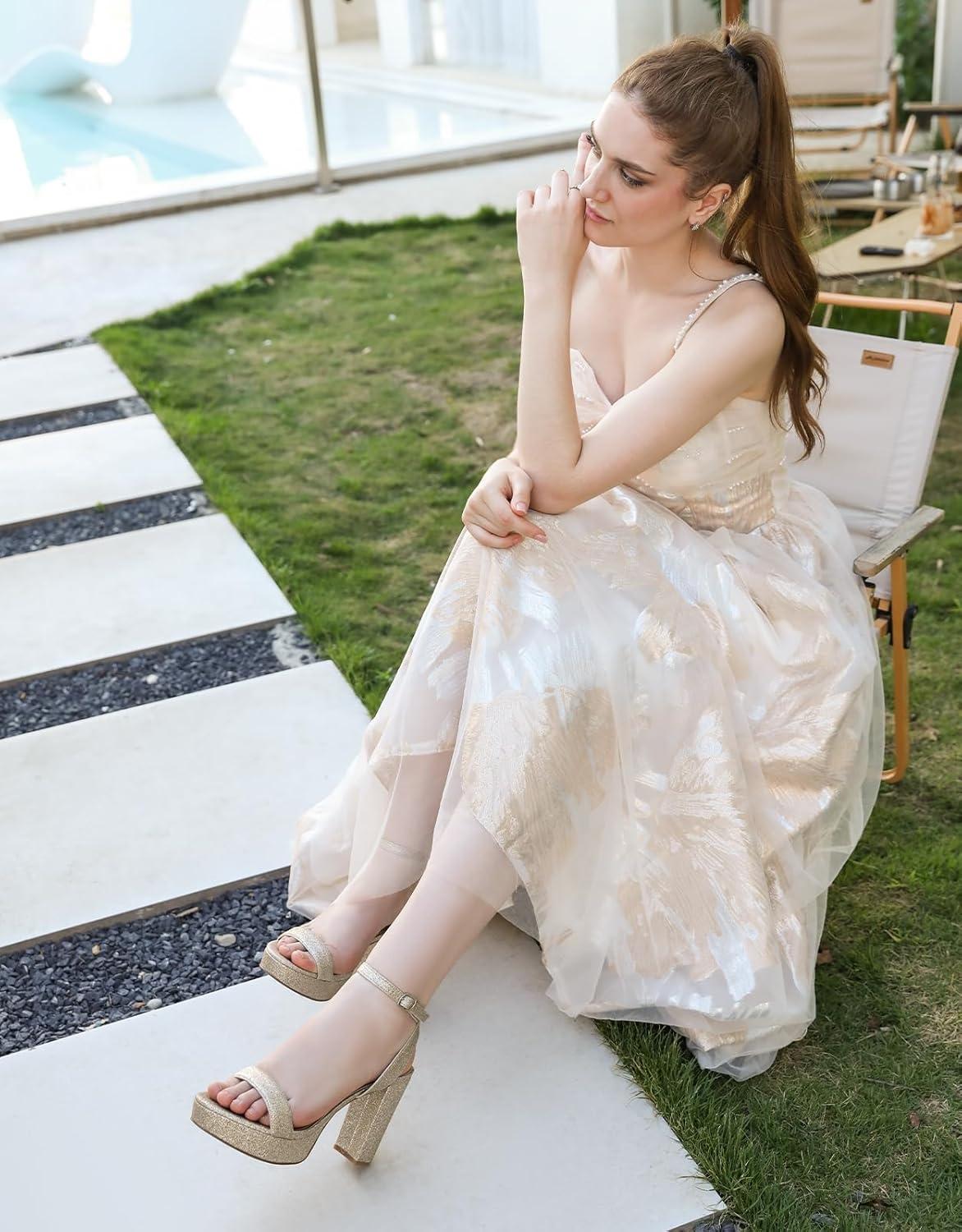 Ankis womens platform heels are made of high quality materials to make a secure fit. We are focus on the healthy and beauty to optimize the arch support and platform. Memory foam padded toe strap, soft adjustable ankle strap,gentle foot arch,4 inches block chunky heels and light-weight Meinai sole, these features ensure our Ankis platform chunky heels comfortable and elegant. You will be free and easy to walk in this cute high heels without pain. This 4 inches open toe block heeled sandals fits for all seasons. it's a must-have option for party, wedding, prom and homecoming shoes. Ankis 4 inches strappy heels for women ensures you enjoy beauty in comfy.