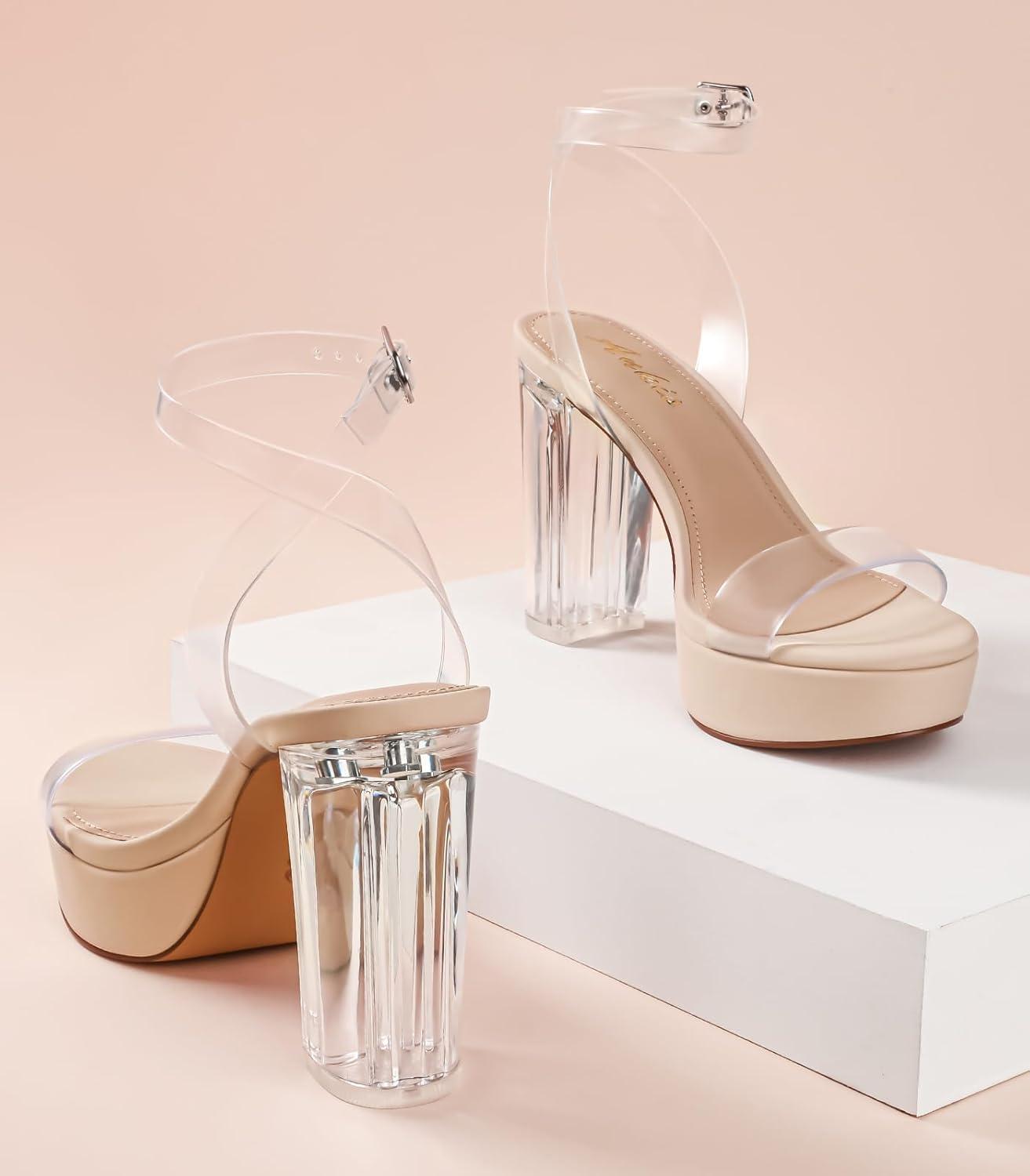 imageAnkis Platform Heels for Women 4 Inches Chunky Heels Sandals for Women Comfy Open Toe Block Heeled Sandals Nude White Silver Gold Black Ankle Strappy HeelsF Crystal Clear