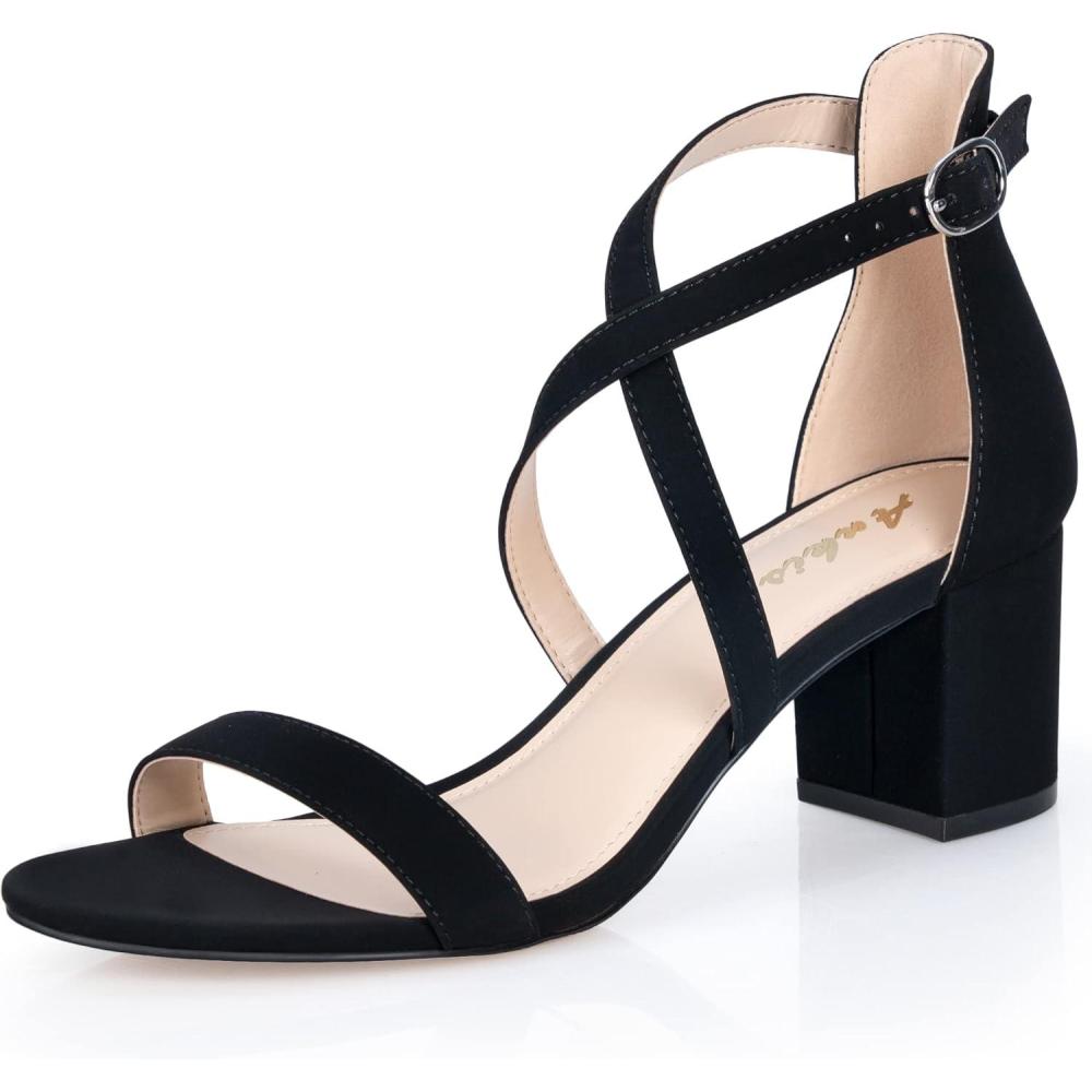 imageAnkis Silver Gold Nude Black White 225Inches Strappy Block Heels Comfy Grace Sandals Open Toe Chunky Dress Wedding Party Prom Heels with Adjustable Cross Strap