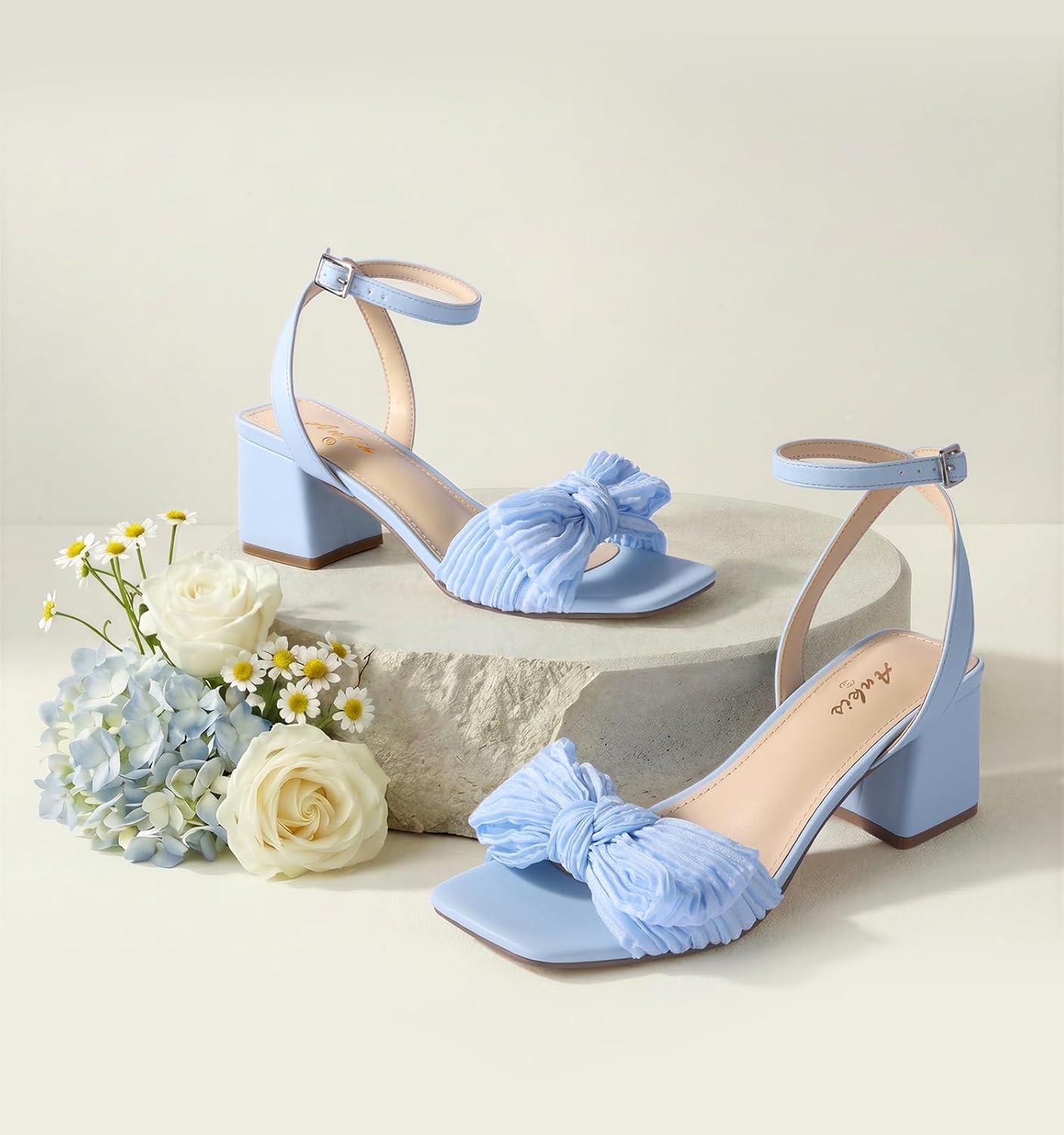Women's Bow Knot Buckle Block Heeled Wedding