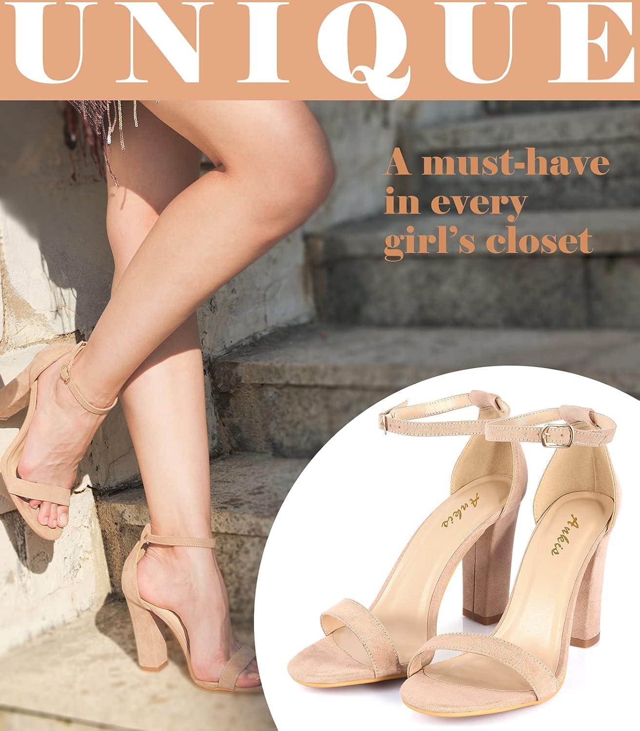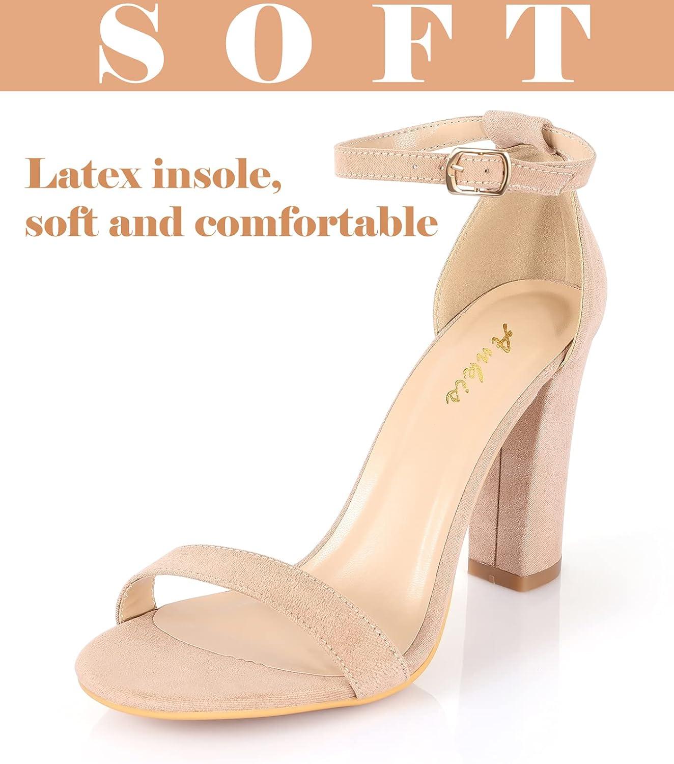 Ankis White Heels Wedding Shoes for Bride Women Chunky Heels Pearl High Heels Heeled Sandals 4 Inch(Nude Suede)