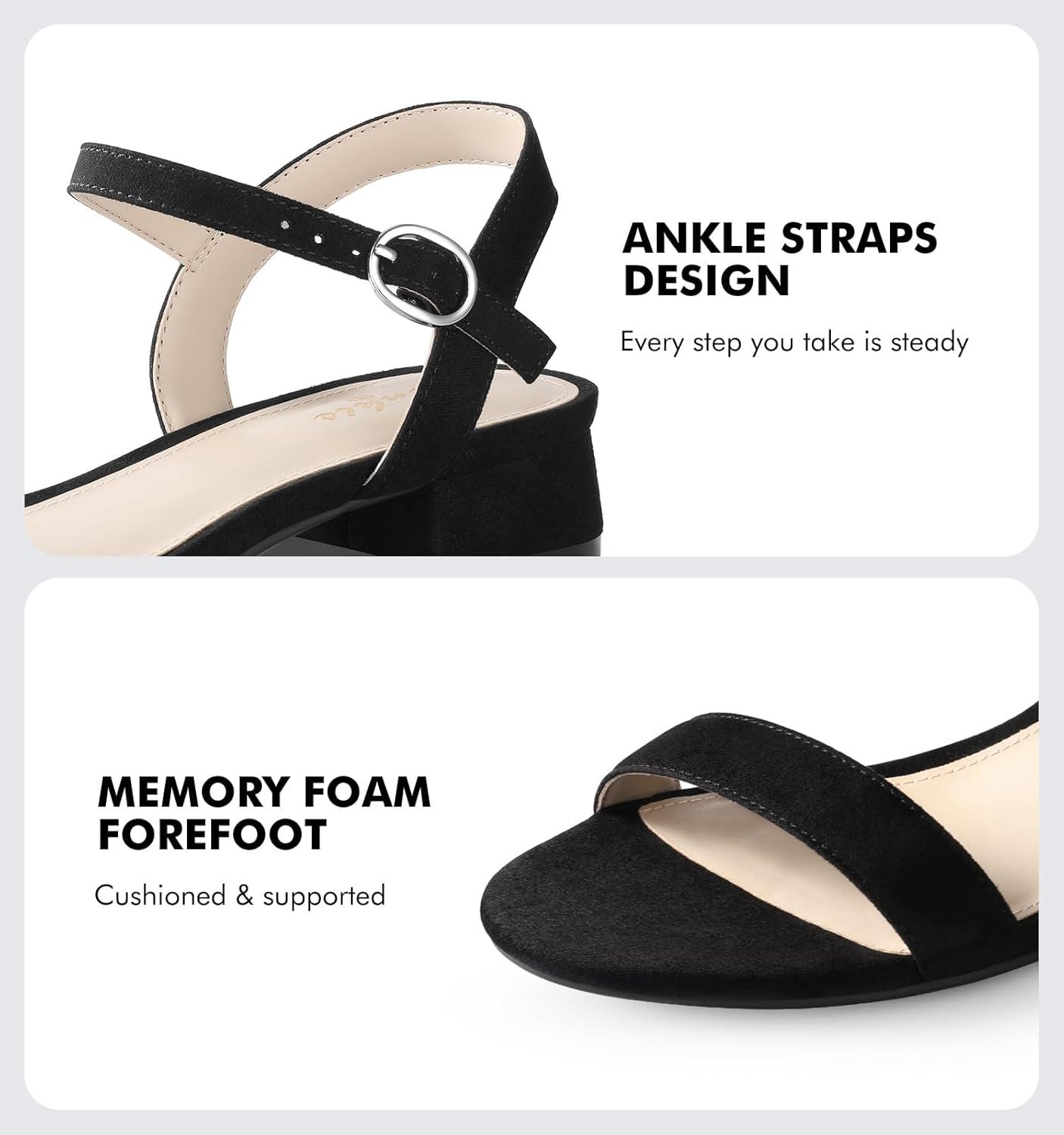 imageAnkis Women Nude Black White Sandals for Women Low Heel 1 Inch Dressy Sandal Ankle Strap Open Toe Block Short Heeled Summer Classic Comfortable Graduation Holiday Party Casual Flat Shoes 2025Black Suede