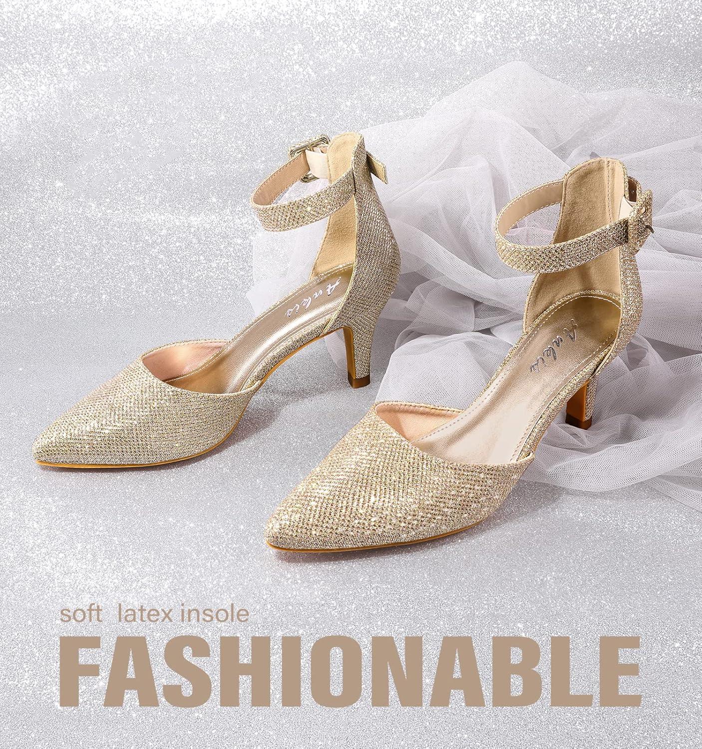 Ankis Women’s Pumps Low Heel – Black Gold Nude Closed Toe Heel for Women Dress Shoes Low Kitten Heel Wedding Bride Evening Party Standard Size 2.6 Inches