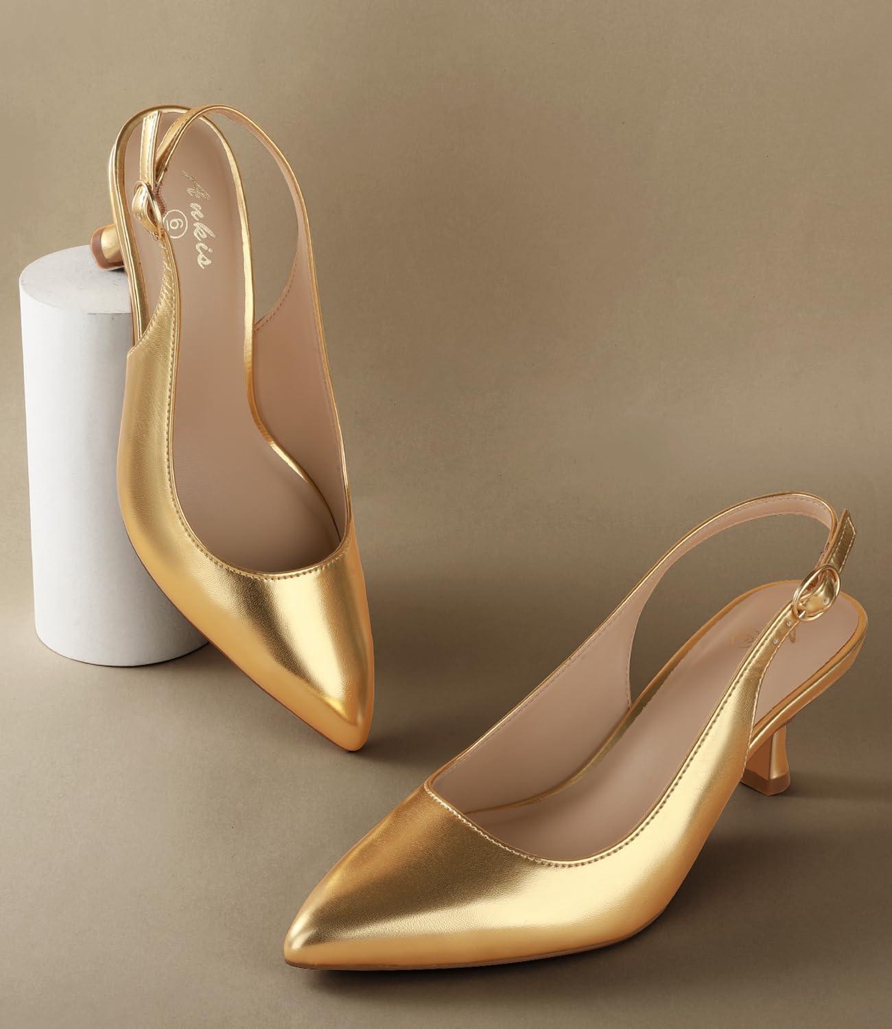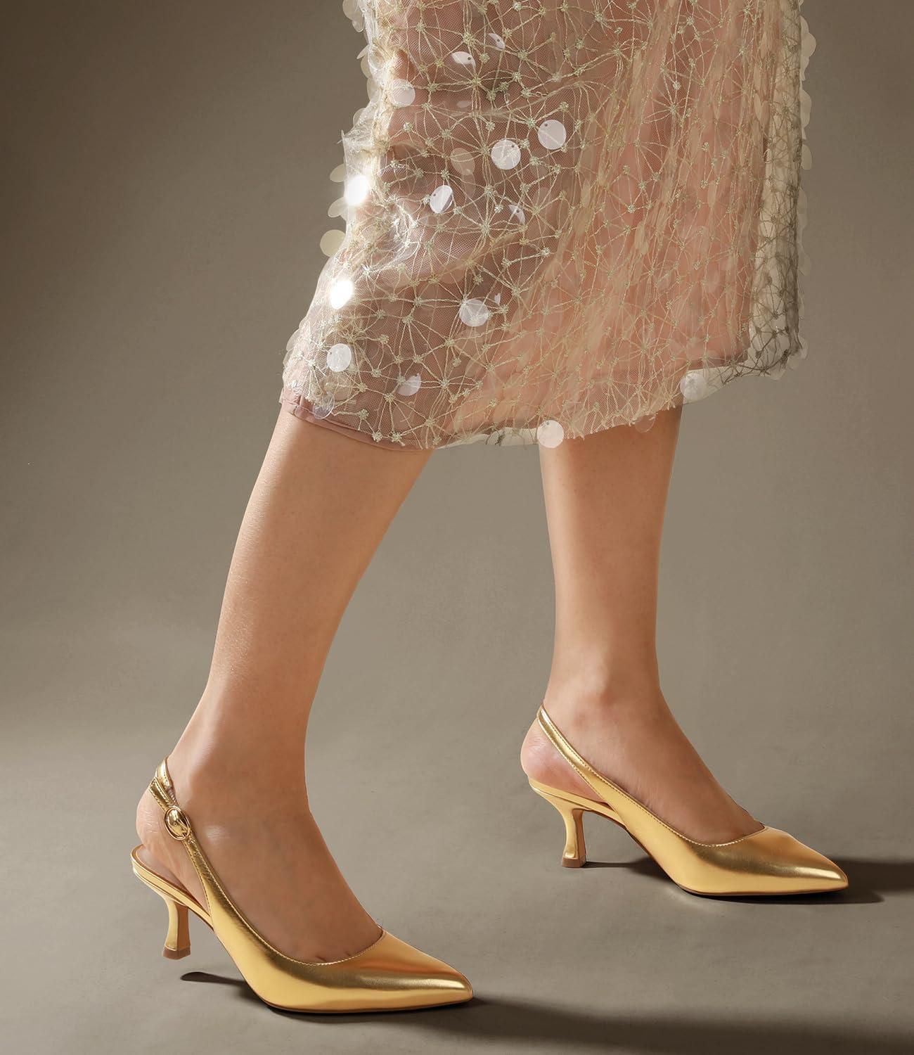 Ankis Women's Slingback Kitten Heels Closed Pointed Toe Pumps Dress Shoes Party Wedding Casual 2.5inch(Gold Pu)