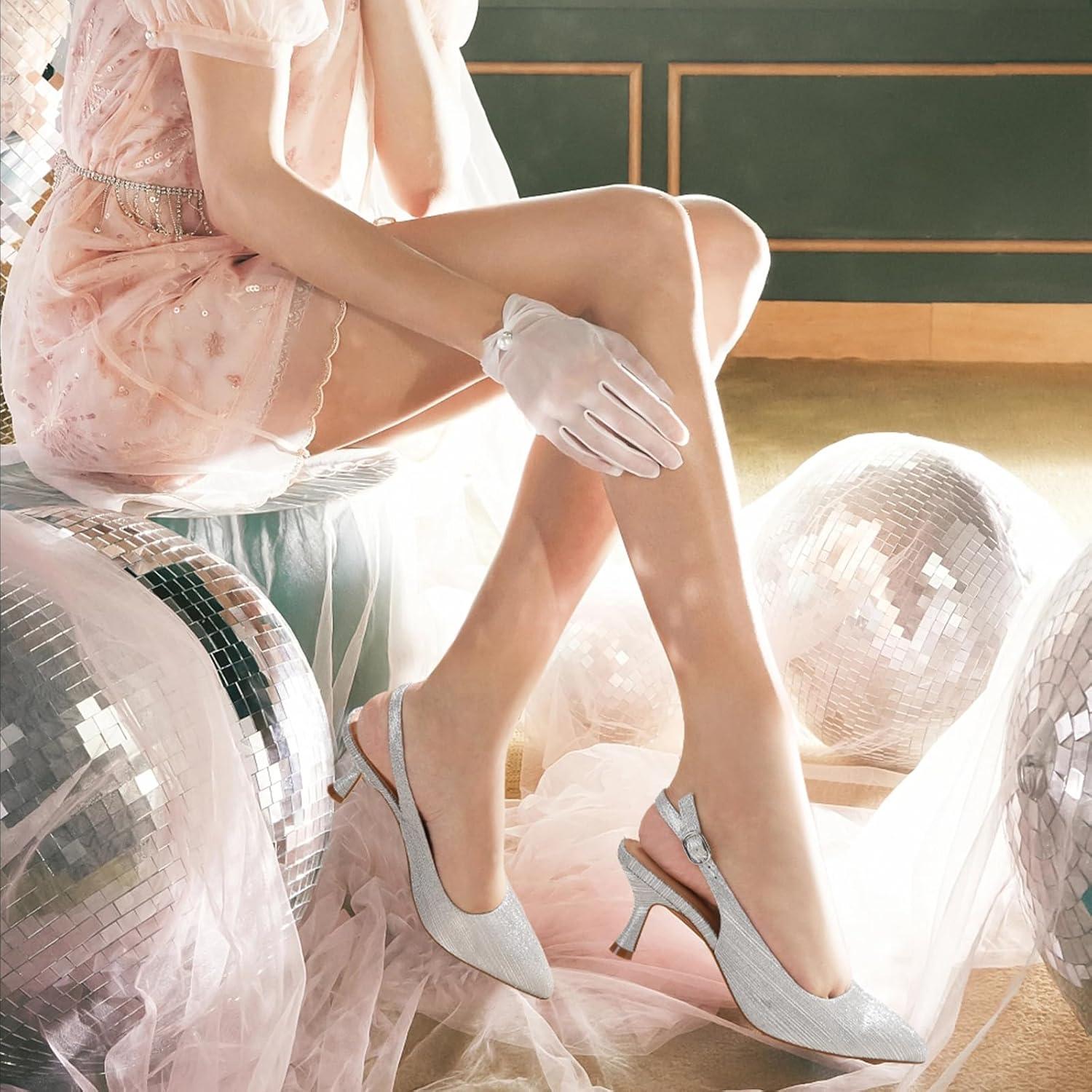 imageAnkis Womens Slingback Kitten Heels Closed Pointed Toe Pumps Dress Shoes Party Wedding Casual 25inchSilver1