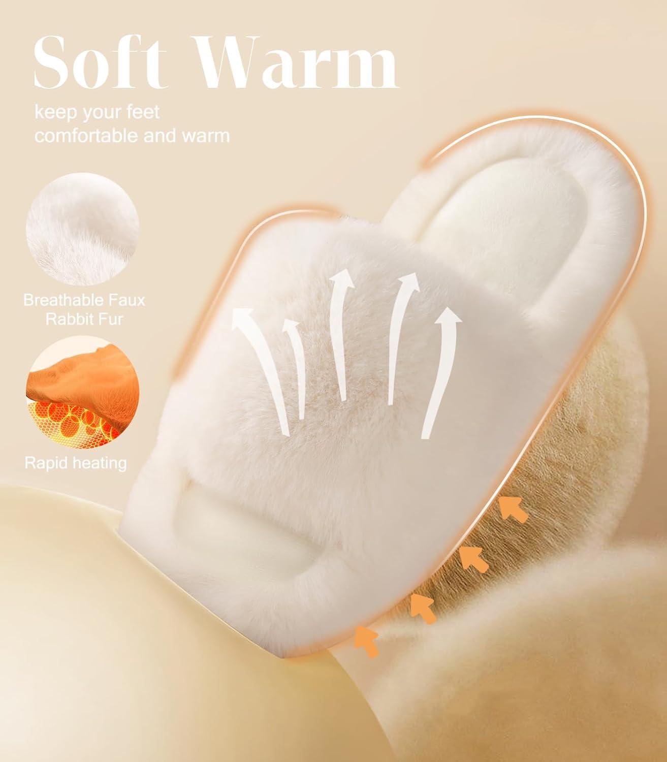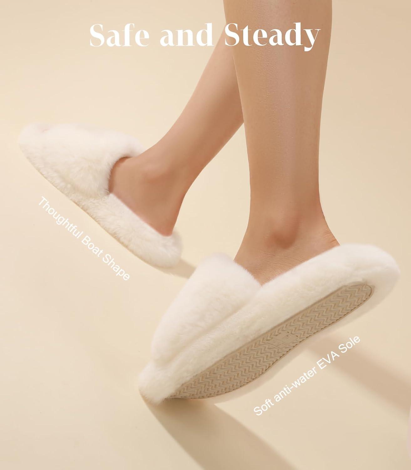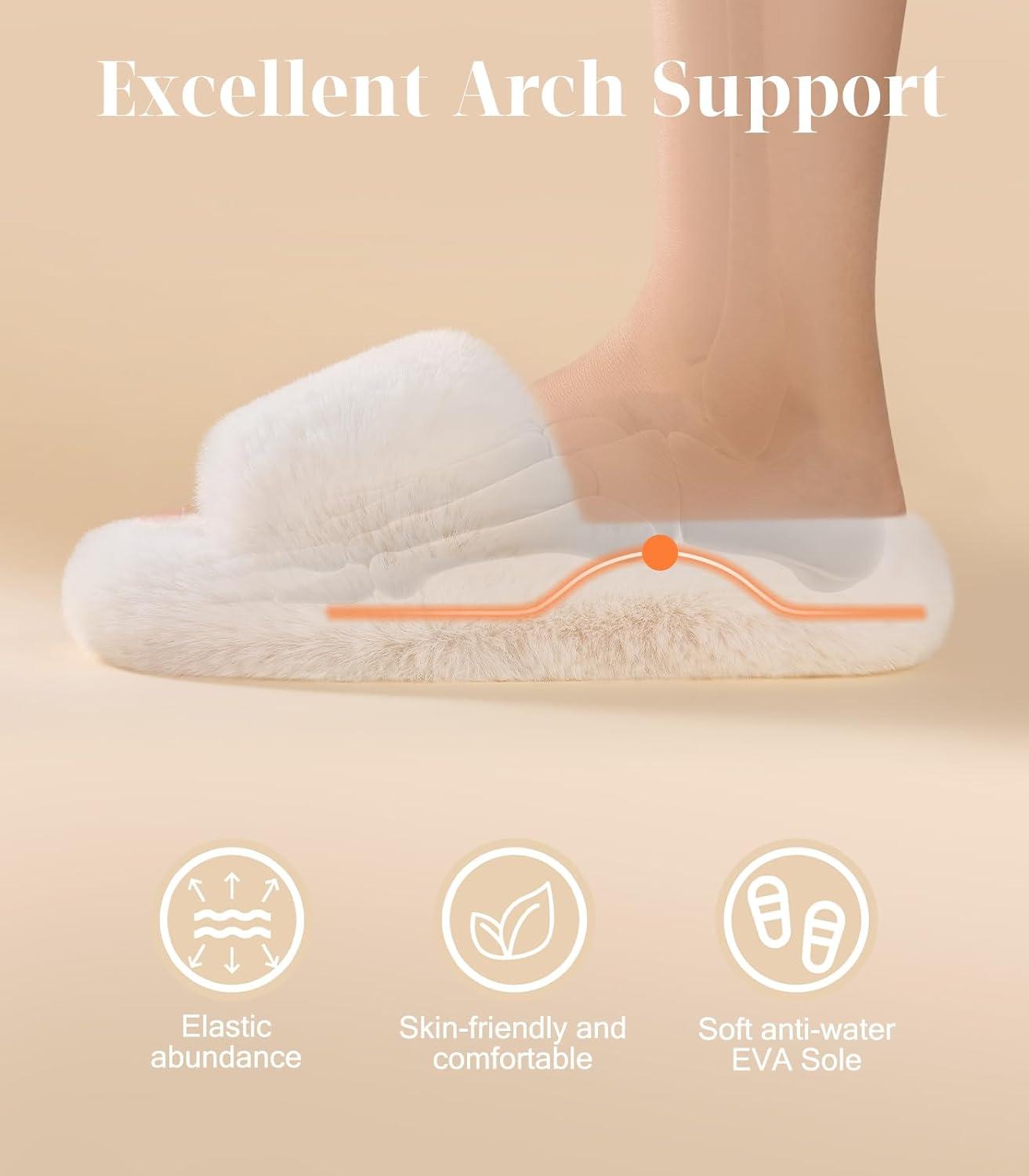 Ankis Womens’s Slippers Comfy Memory Foam House Open Toe Fuzzy Slipper Plush Indoor Outdoor Slide Furry Platform Fur Lined Shoes(White)
