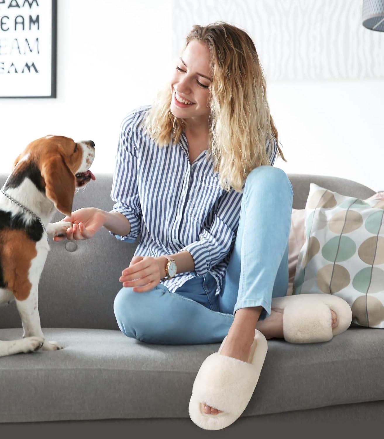 imageAnkis Womenss Slippers Comfy Memory Foam House Open Toe Fuzzy Slipper Plush Indoor Outdoor Slide Furry Platform Fur Lined ShoesWhite