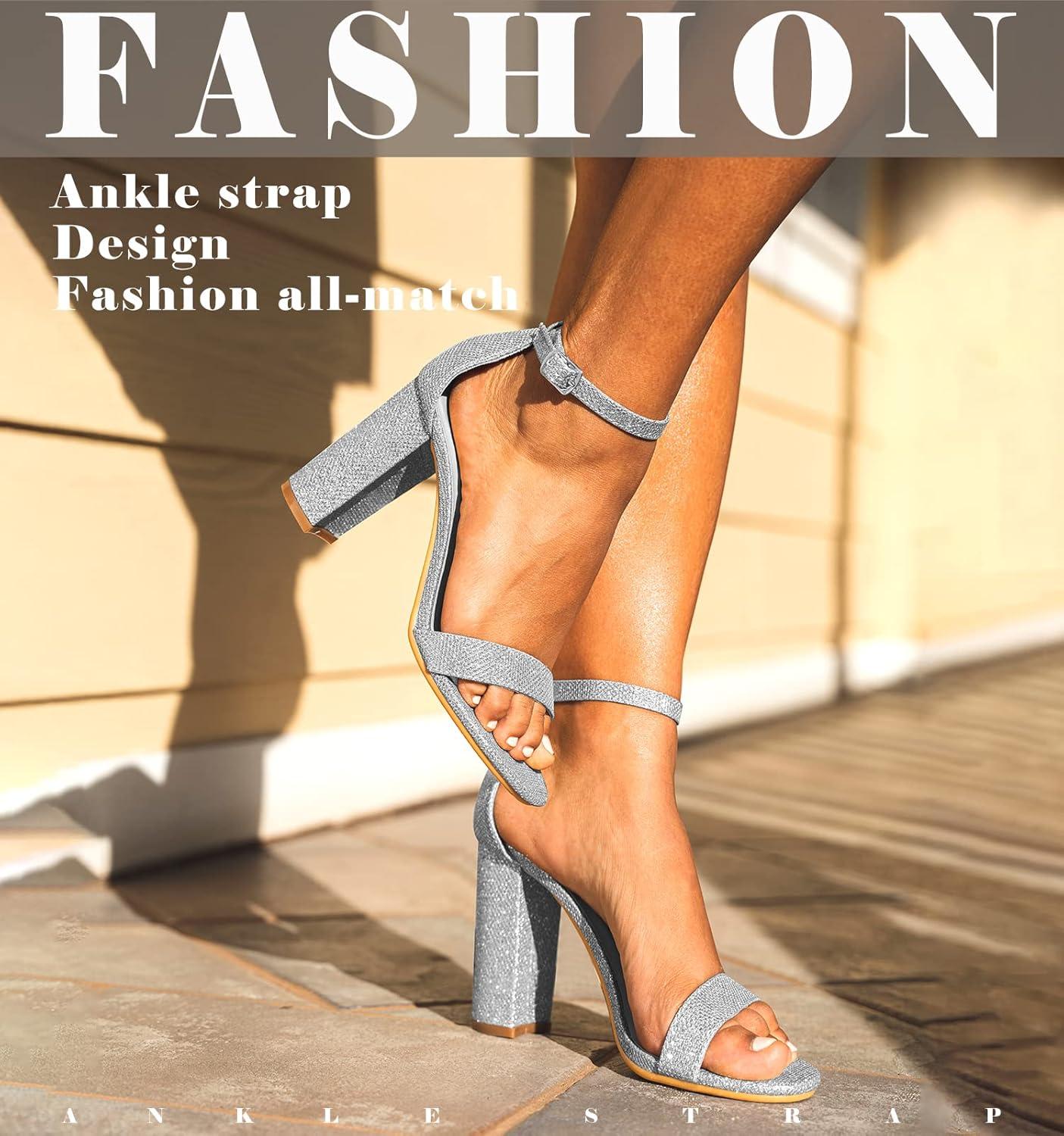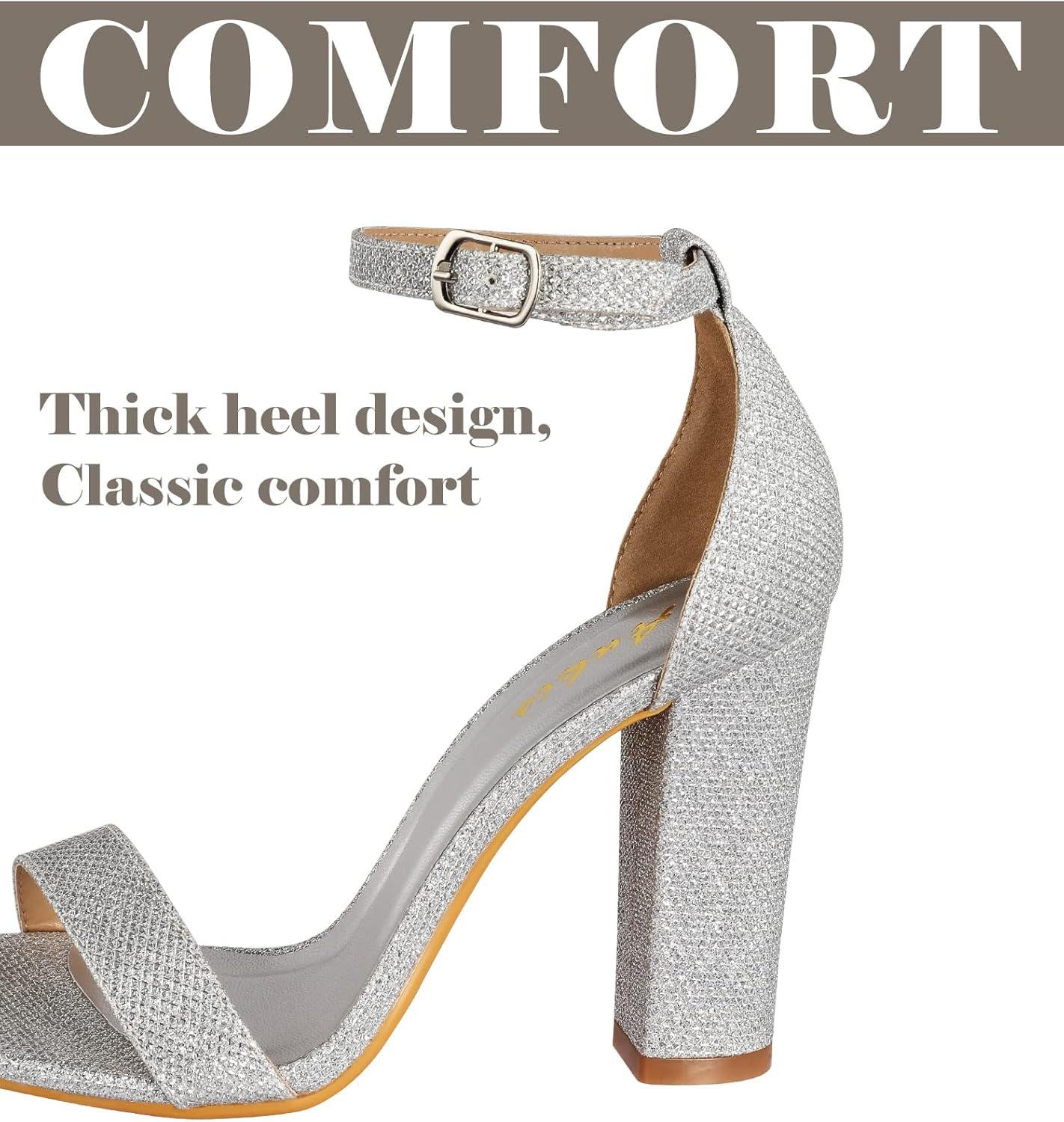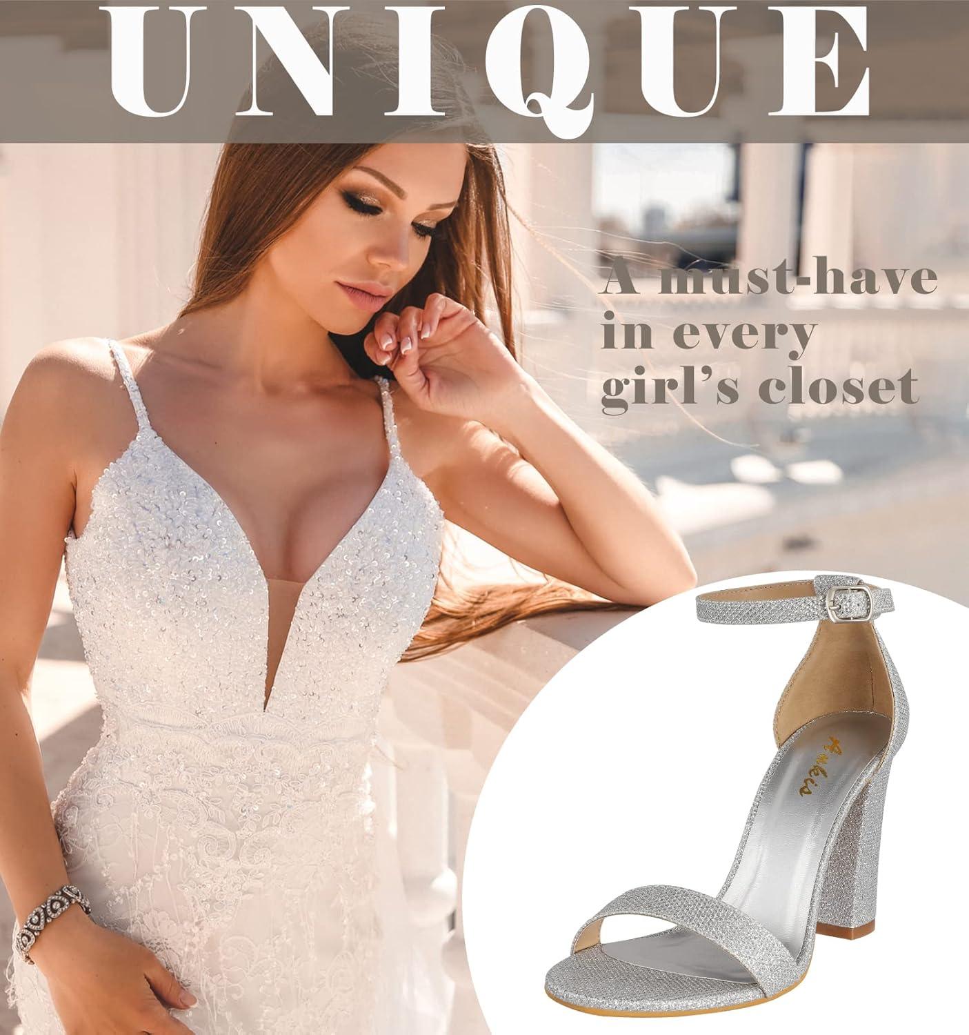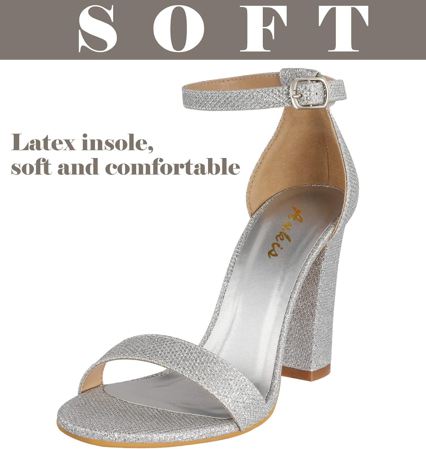 imageNude Black White Heels for Women Open Toe Ankle Strap High Heel Sandals Party Wedding Strappy Buckle Sandals Standard Size 4 Inches Tall High Heel DesignSilver